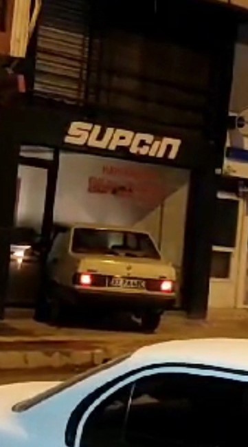 Çorum’un Osmancık ilçesinde, direksiyon hakimiyetini kaybeden sürücü arabayla bir işyerine girdi. Kaza anı, cep telefonu kamerasına saniye saniye yansıdı.