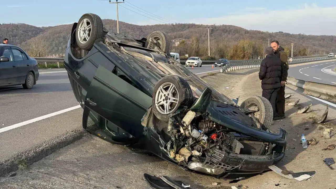 Sakarya’nın Adapazarı ilçesi D-650 kara yolunda sürücüsünün direksiyon hakimiyetini kaybetmesi neticesinde kontrolden çıkan otomobil takla attı. Meydana gelen kazada sürücü yaralandı.