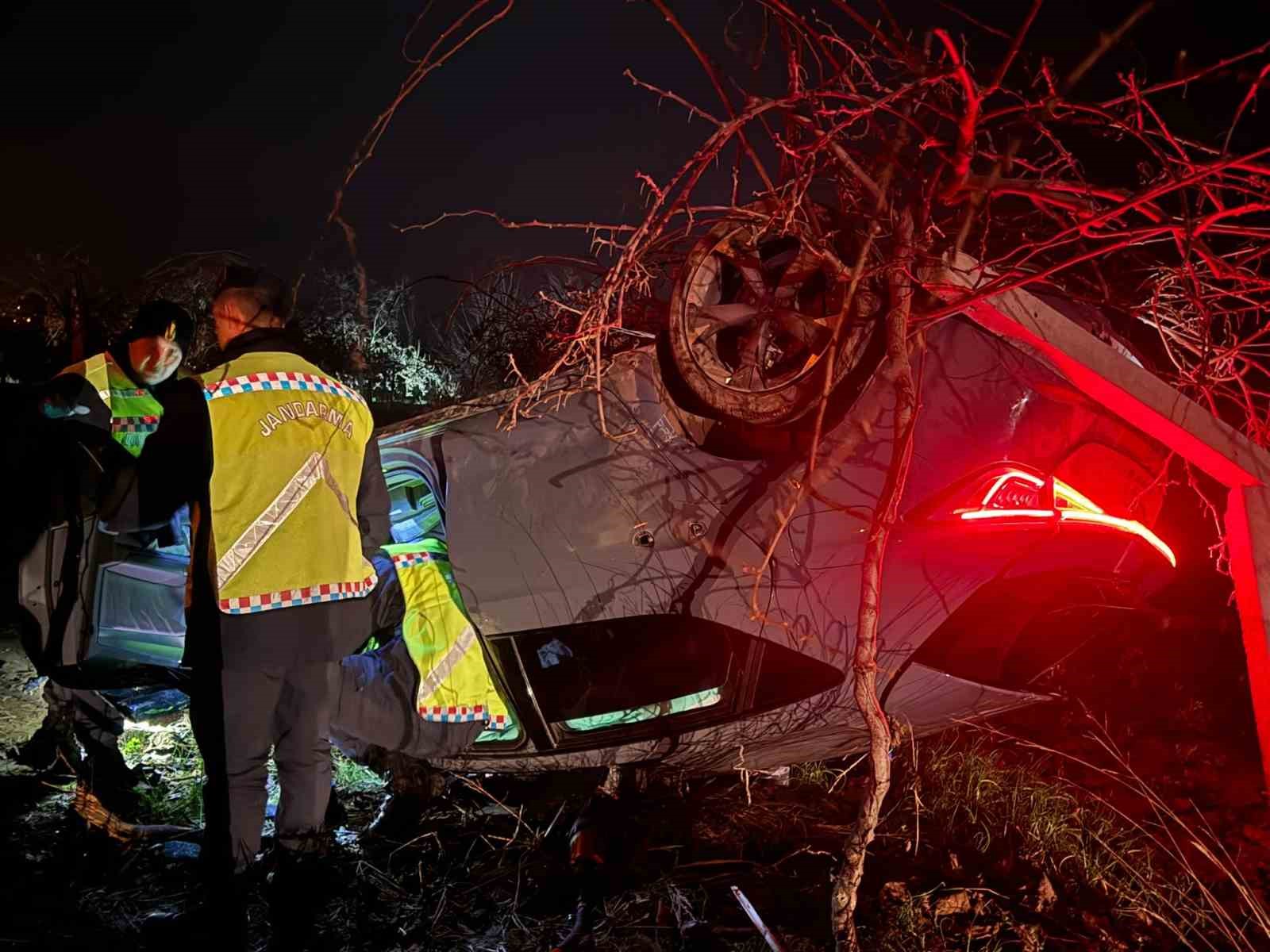 Bursa’nın İznik ilçesinde kontrolden çıkan otomobilin takla attığı kazada 2 kişi yaralandı.
