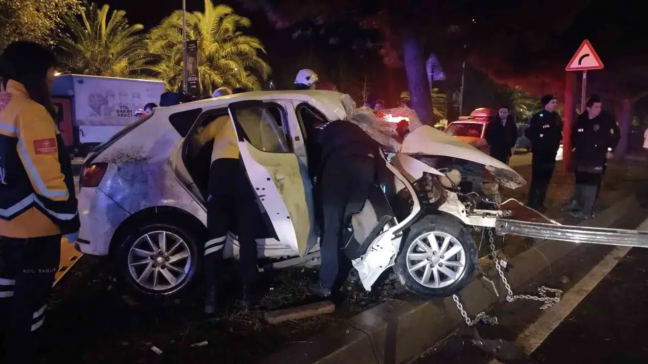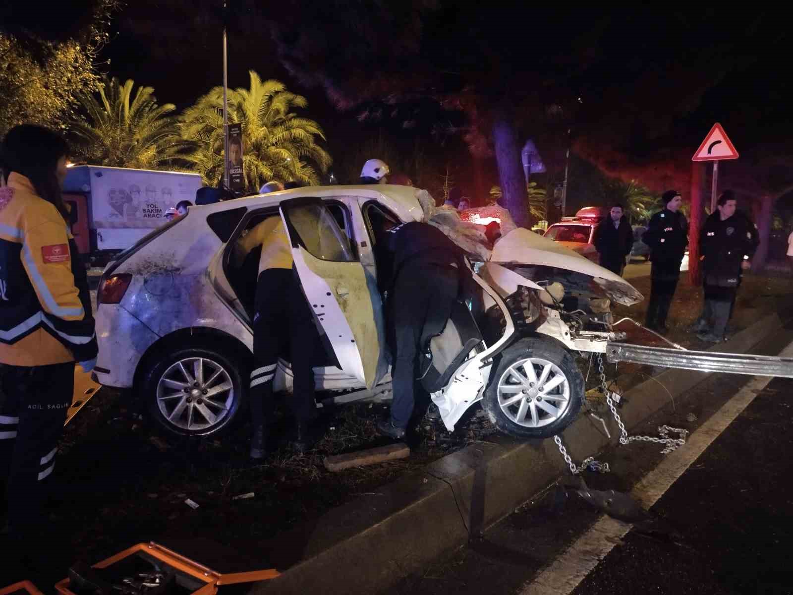 Denetimden Çıkan Araç Refüjdeki Ağaca Çarptı: 2 Yaralı