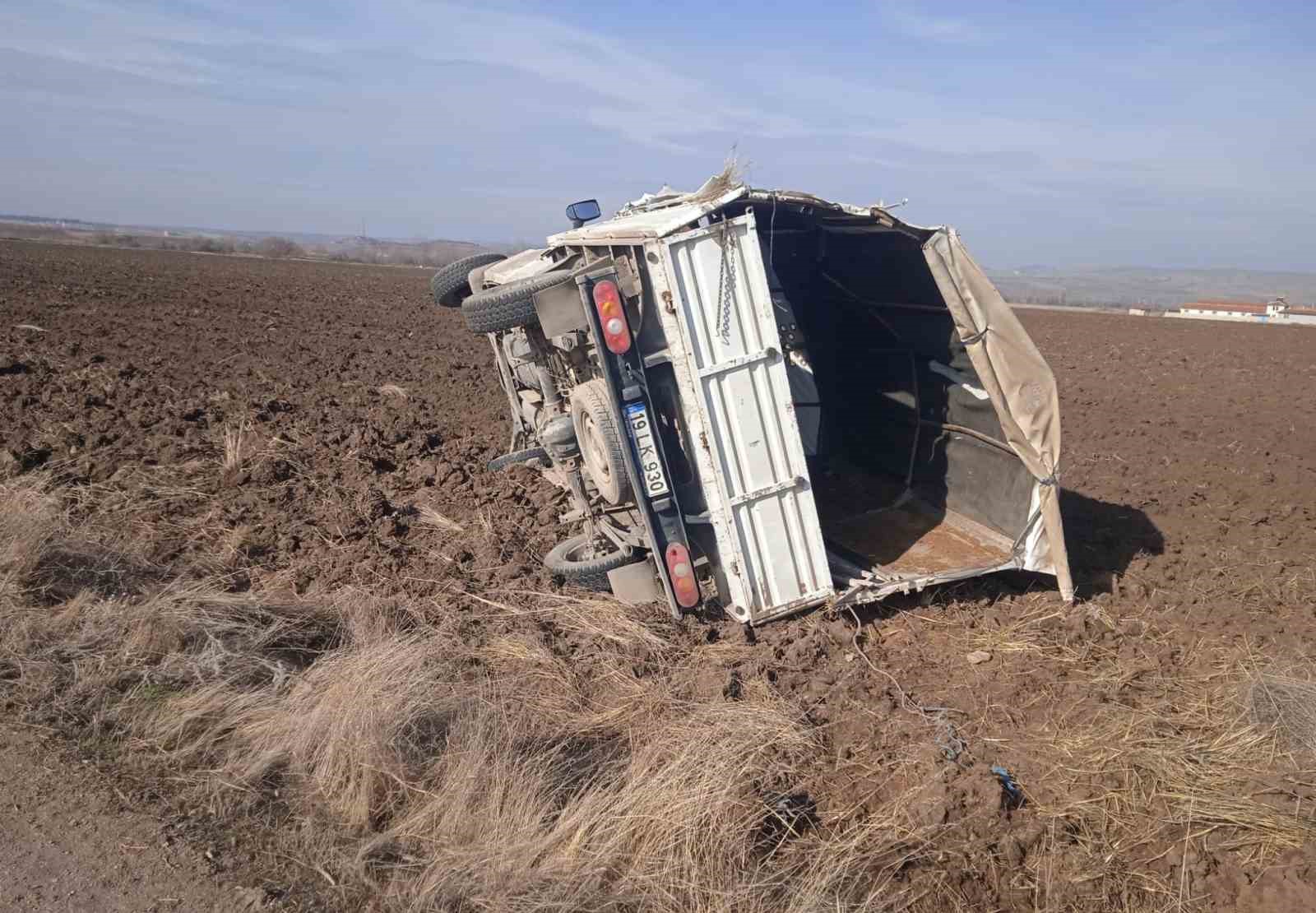 Çorum’un Alaca ilçesinde sürücüsünün kontrolünden çıkan kamyonet tarlaya uçtu.