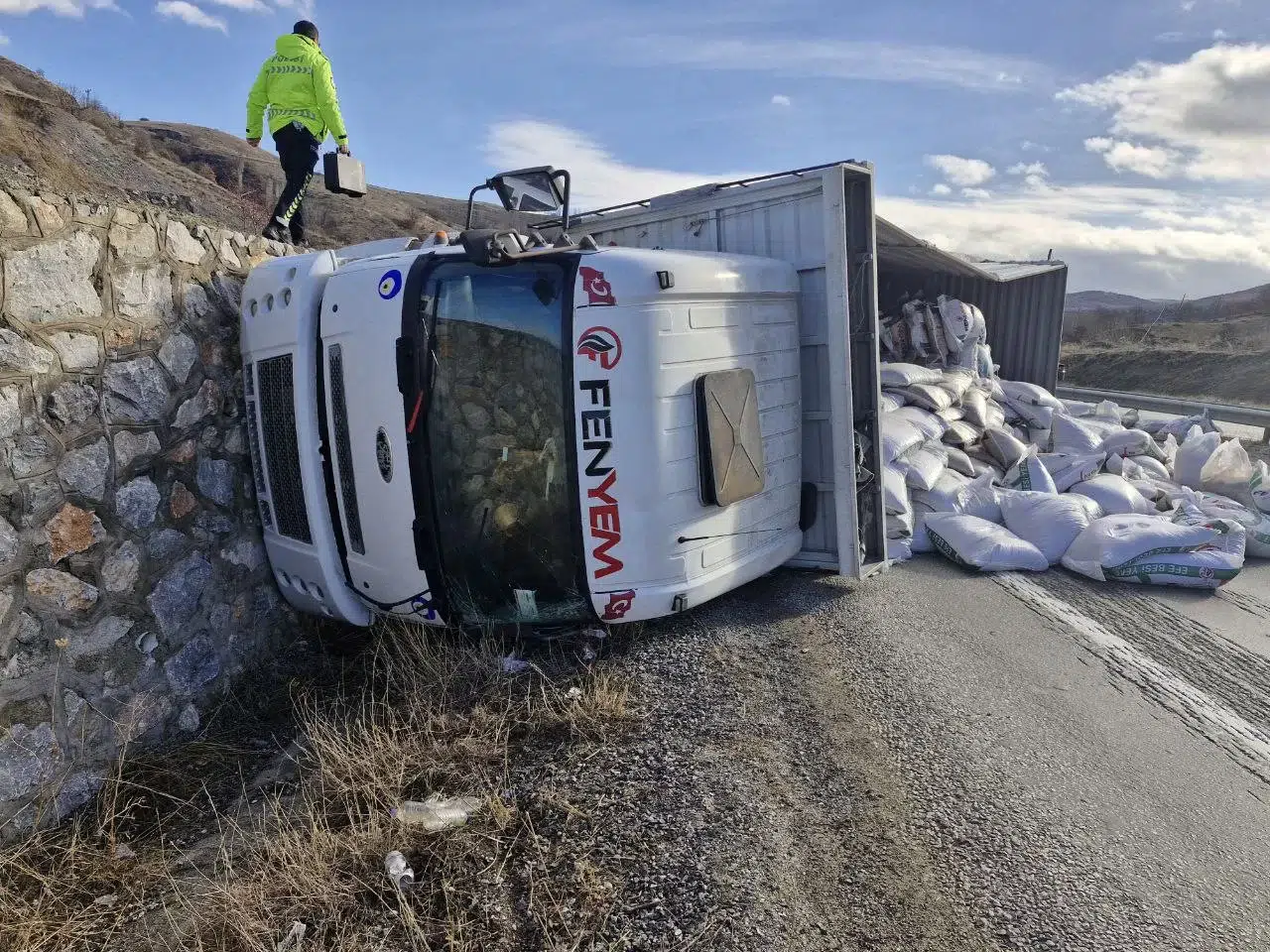 Kaza, Çorum merkeze bağlı Budakören köyü yakınlardaki köprübaşında meydana geldi. Edinilen bilgiye göre, Alaca’dan Çorum istikametine giden Kamil Ö. (68) yönetimdeki 19 LL 359 plakalı hayvan yemi yüklü tır, sürücüsünün kontrolünden çıkarak devrildi. Sürüklenmeye başlayan tır, yol kenarındaki istinat duvarına çarparak durabildi. Kazayı görenlerin ihbarı üzerine olay yerine jandarma, polis ve 112 Sağlık ekibi sevk edildi. Kazada tır içerisinde sıkışan sürücü, çevredeki vatandaşlar tarafından sıkıştığı yerden kurtarılarılıp olay yerine gelen ambulansla Alaca Devlet Hastanesi’ne kaldırılarak tedavi altına alındı.