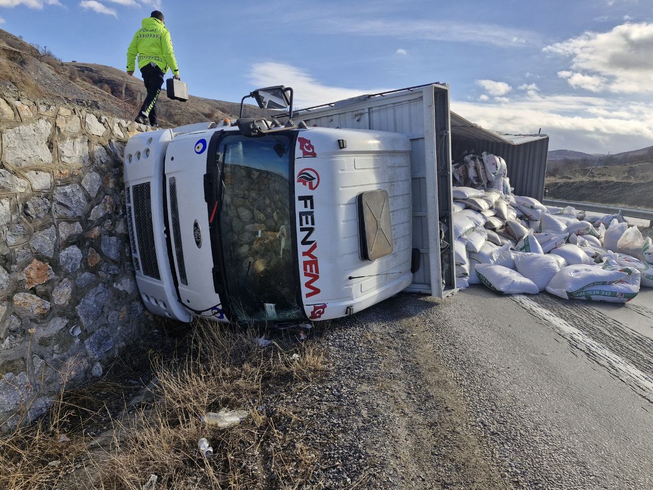 Kesin Karar Ulusal Denetimden Çıkan Yem Yüklü Tır Devrildi