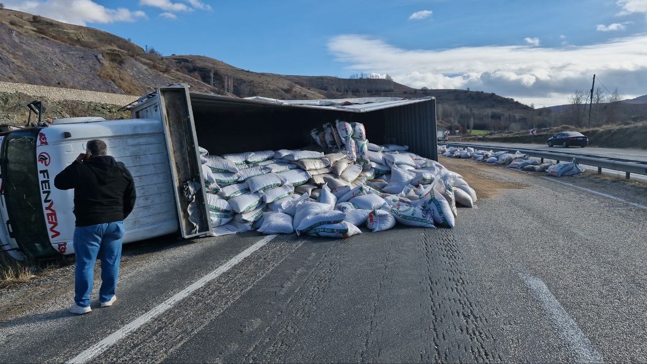 Denetimden Çıkan Yem Yüklü Tır Devrildi