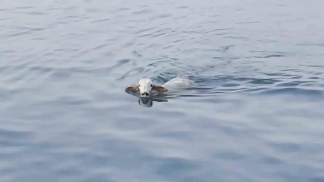 Denize Düşen Angus Yüzerek Kaçmaya Çalıştı
