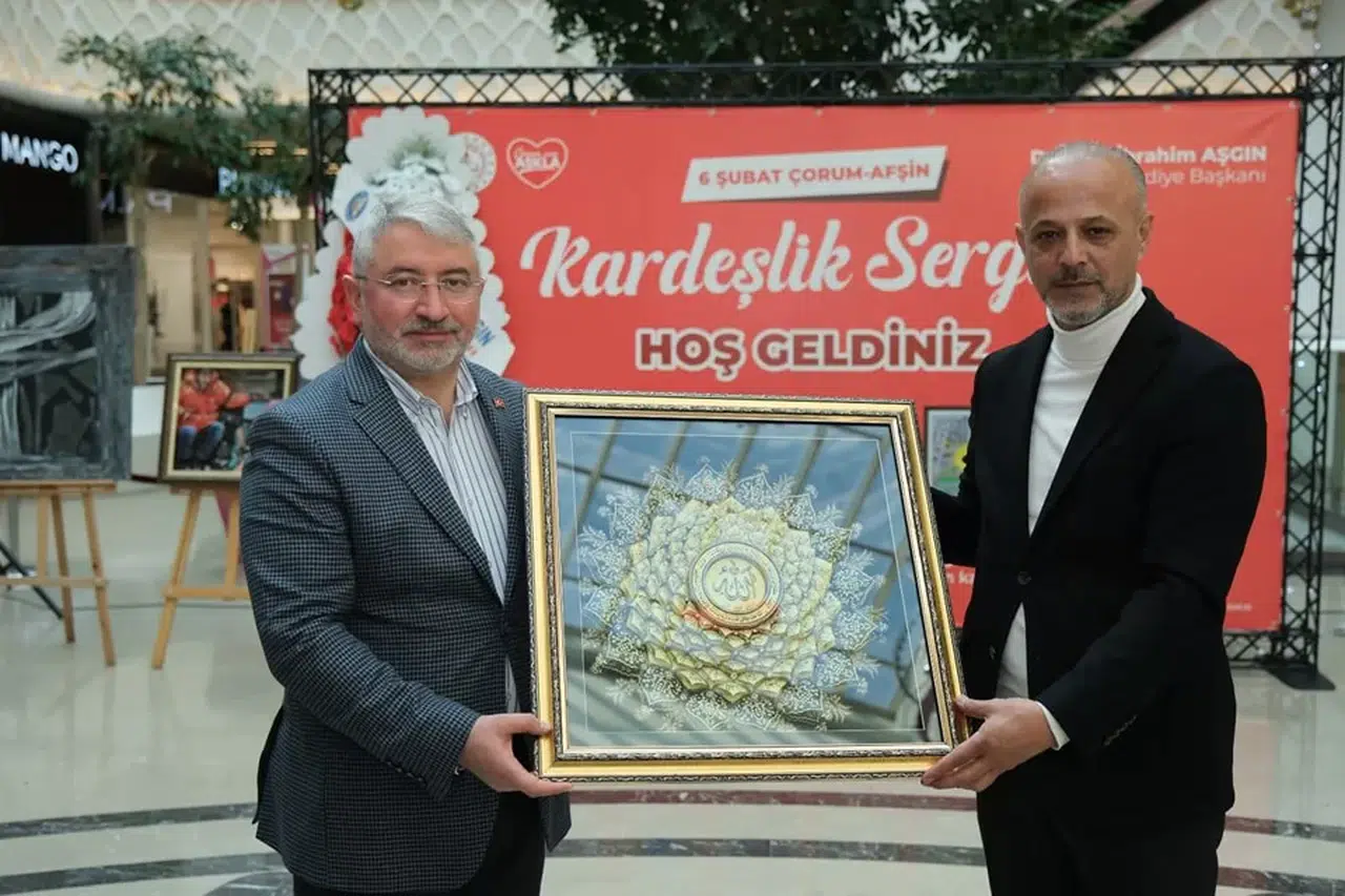 Çorum'da, Kahramanmaraş'ın Afşin ilçesinden görsel sanatlar öğretmen ve öğrencilerinin deprem temalı resimlerinden oluşan "Çorum-Afşin Kardeşlik Sergisi" açıldı.