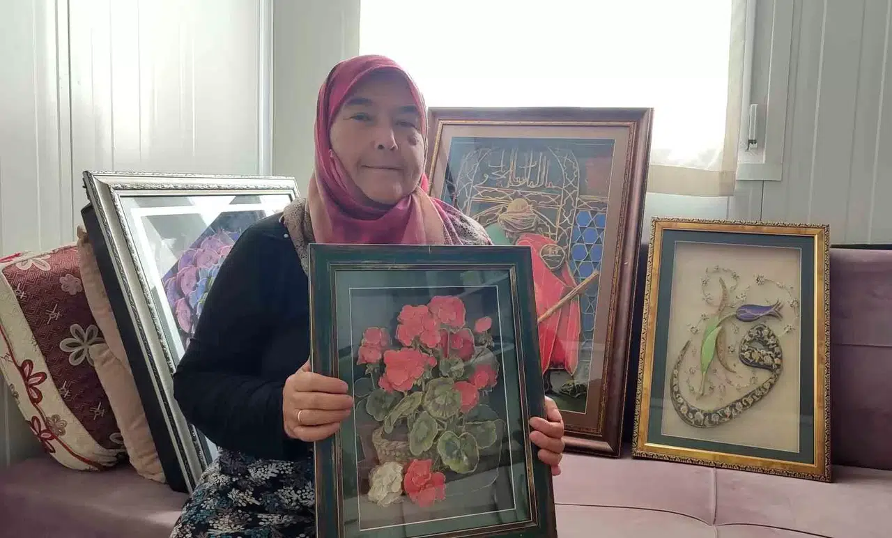 Kahramanmaraş’ta depremzede bir kadının konteyner kentte yaptığı tablolar geçim kaynağı oldu.