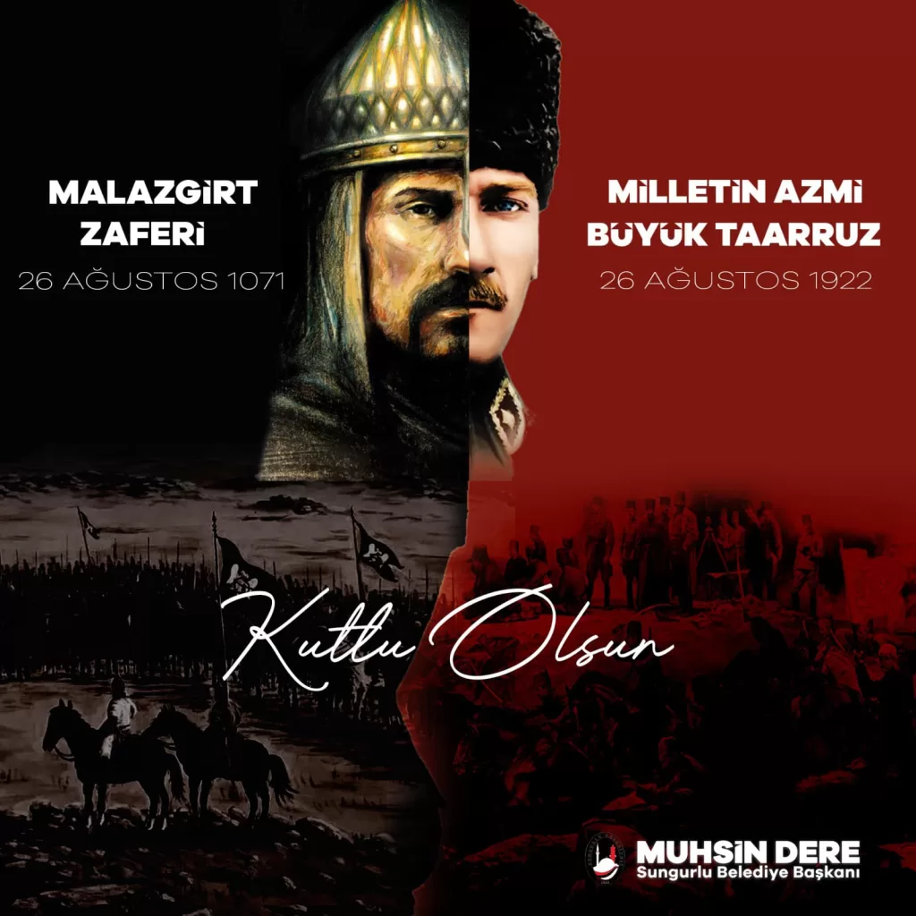 Sungurlu Belediye Başkanı Muhsin Dere, Malazgirt Zaferini ve Büyük Taarruzu kutlayan bir mesaj paylaştı.