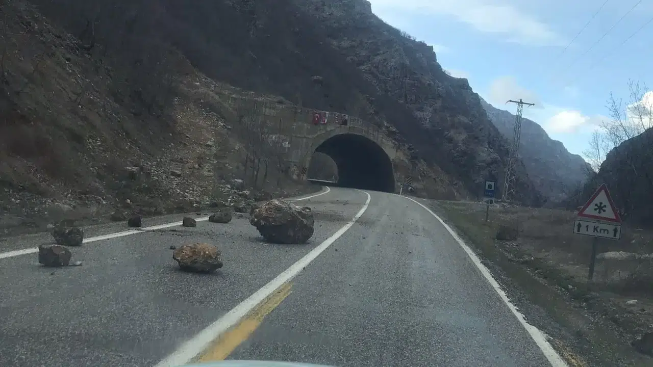 Tunceli-Erzincan karayolunun 13. tünel mevkiinde kayalar yola düştü. Karayolları ekipleri yolda sürekli ring atarken, yetkililer karayolunu kullanan şoförlerin taş ve kaya düşmesine karşı dikkatli olmasını istedi.