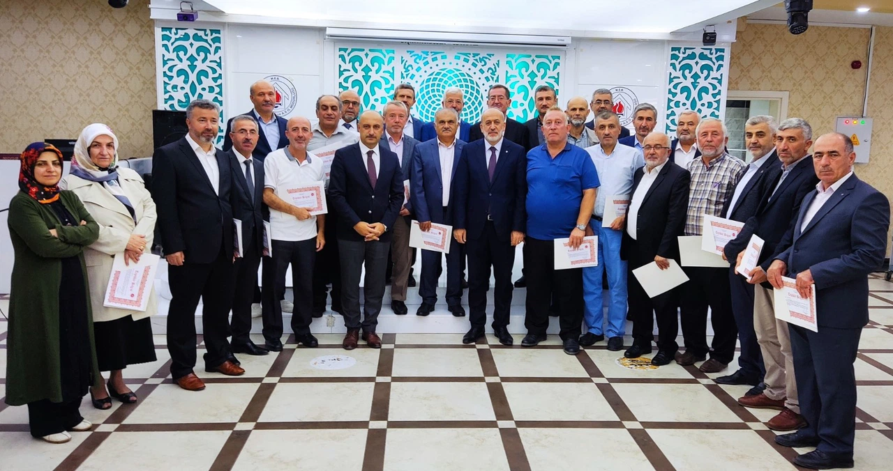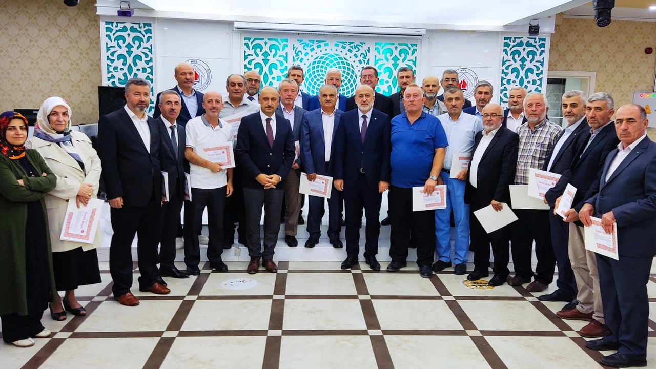 Program sonunda İl Müftüsü Biçer emekli olan personellerimize Teşekkür Belgesi verdi. (Zahide Yasemin Özden)