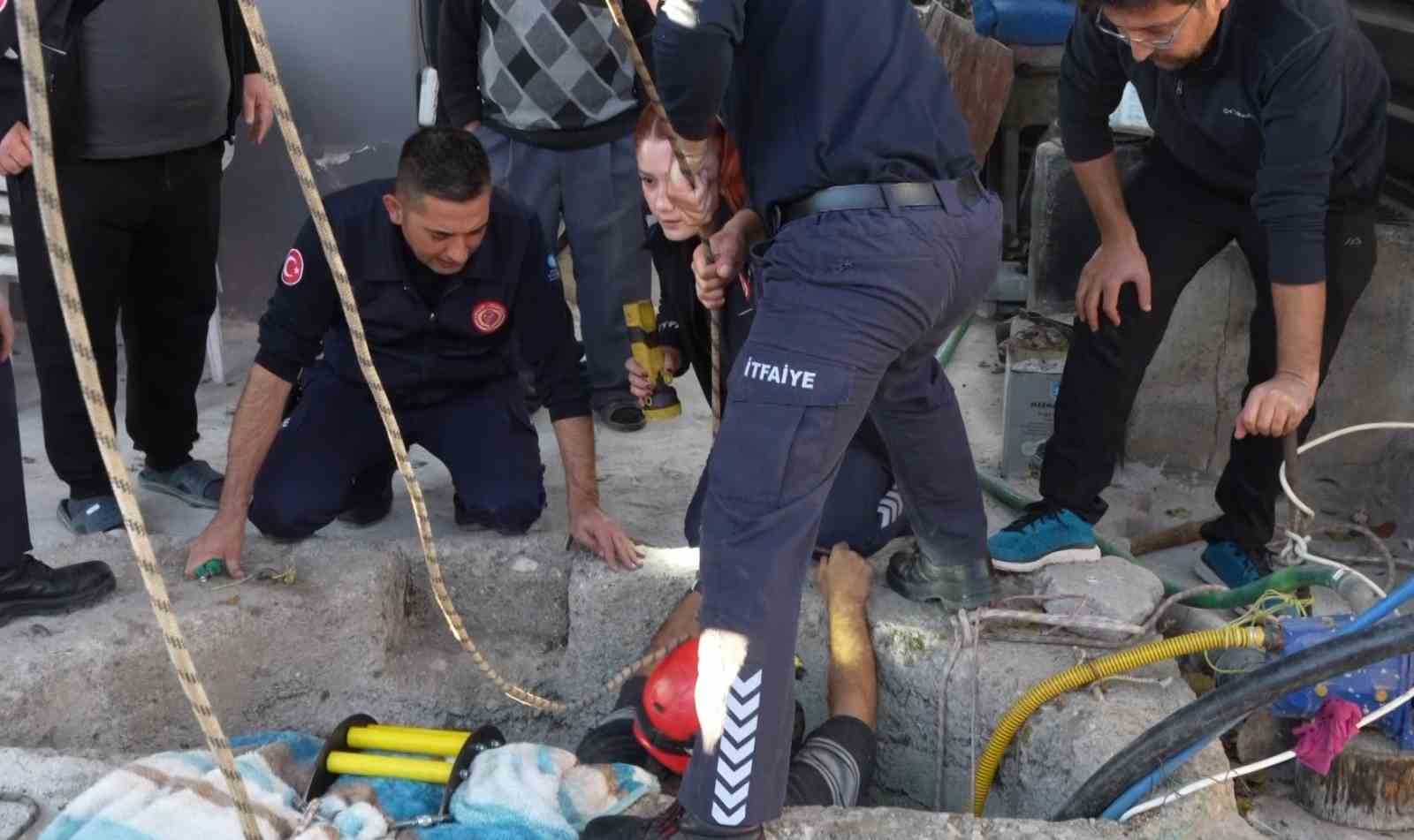 Olay, dün saat 15.30 sıralarında Konyaaltı ilçesi Kartepe Mahallesi Araplar Caddesi üzerinde yaşandı. Edinilen bilgiye göre, İhsan G. (62) dinamodaki arızayı gidermek için merdivenle yaklaşık 10 metre derinlikteki su kuyusuna indi. Burada problemini gideren İhsan G., ardından yukarı çıkmak istedi ancak kendini iyi hissetmedi. İhsan G., sesini yakınlarına duyurup durumu anlatınca 112 Acil Çağrı Merkezinden yardım talep edildi. İhbarın ardından bölgeye itfaiye ve jandarma ekipleri sevk edildi. Belirtilen adrese gelen itfaiye ekipleri, halatla bağladıkları İhsan G.’yi başarılı bir operasyonla yukarı çekti.