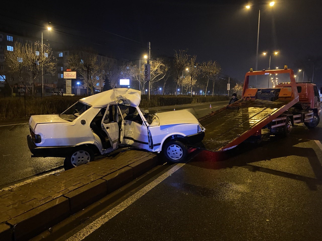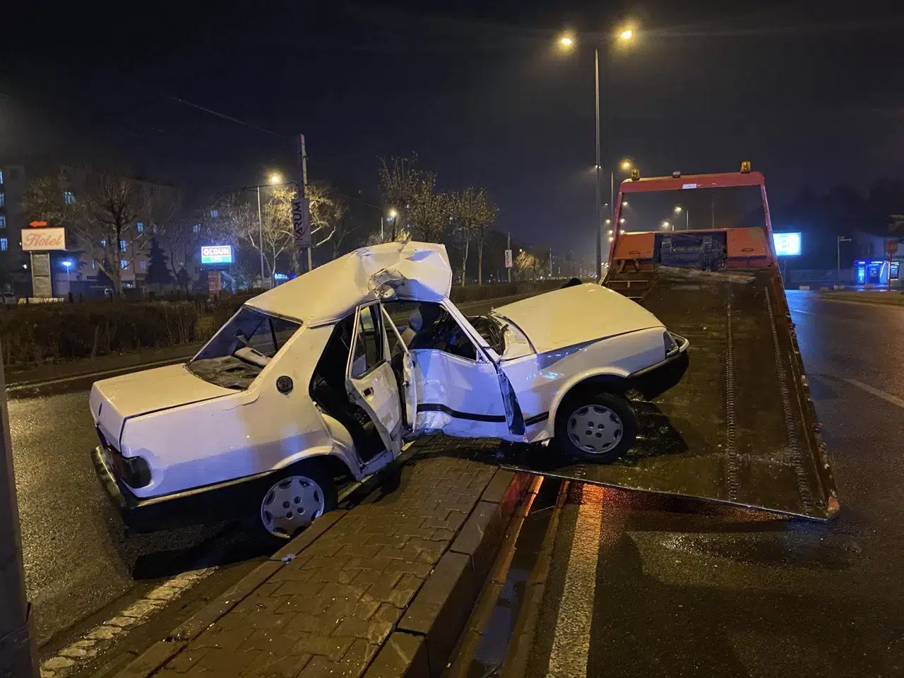 Direğe Çarpan Otomobil Ortadan İkiye Büküldü: 4 Yaralı