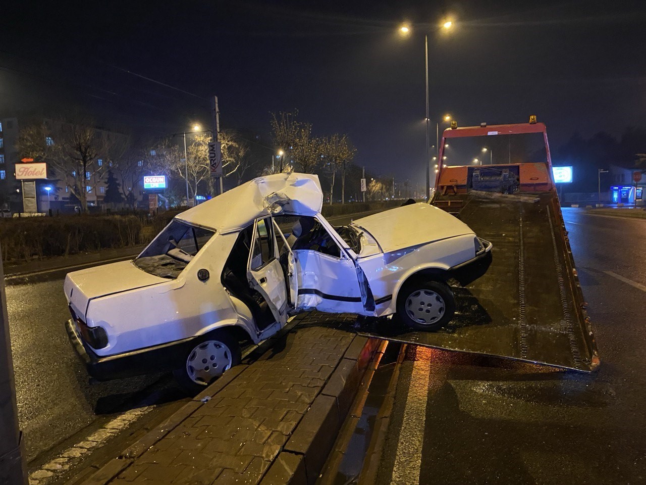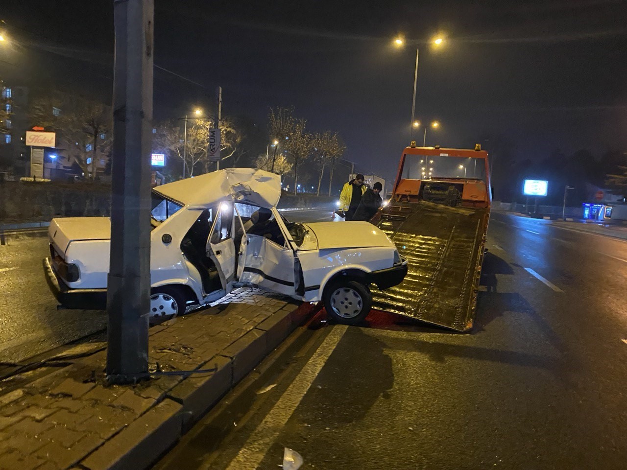 Kayseri’nin Kocasinan ilçesinde direğe çarpan otomobil ortadan bükülürken, kazada 4 kişi yaralandı.