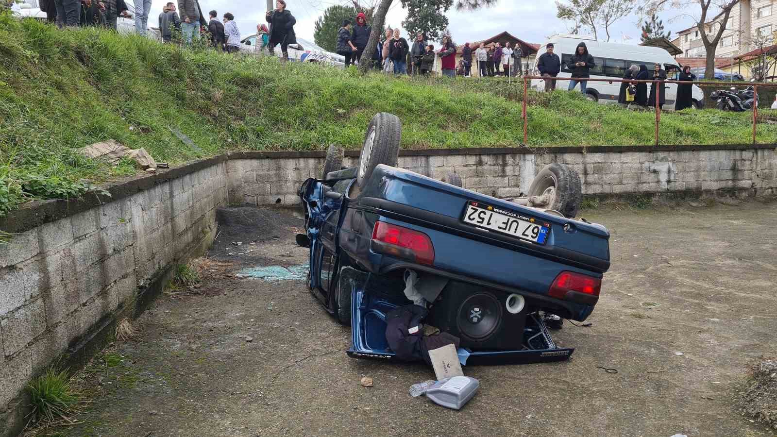 Kaza, 14.00 sıralarında Alaplı Tepeköy Halk Eğitim Merkezin bulunduğu yol üzerinde meydana geldi. Yaşar K, ait 67 UF 152 plakalı araç, direksiyon başında nöbet geçirmeye başlayınca kontrolden çıkarak önce karşıdan gelen 67 SL 604 plakalı taşımalı öğrenci servisine çarptı, ardından geri geri giderek 5 metre yüksekliğinde duvardan takla atıp düştü. Çevredekilerin ihbarı üzerine bölgeye gelen İtfaiye ve 112 sağlık ekipleri, otomobilde sıkışan Yaşar K.’yi çıkardı. Sağlık ekiplerine müdahale sırasında sara nöbeti geçirdiğini söyleyen görgü şahitleri, ambulansla Ereğli Devlet Hastanesi’ne götürüldü. Kaza anında taşımalı öğrenci servis aracında Öğrenci olmadığı öğrenildi.