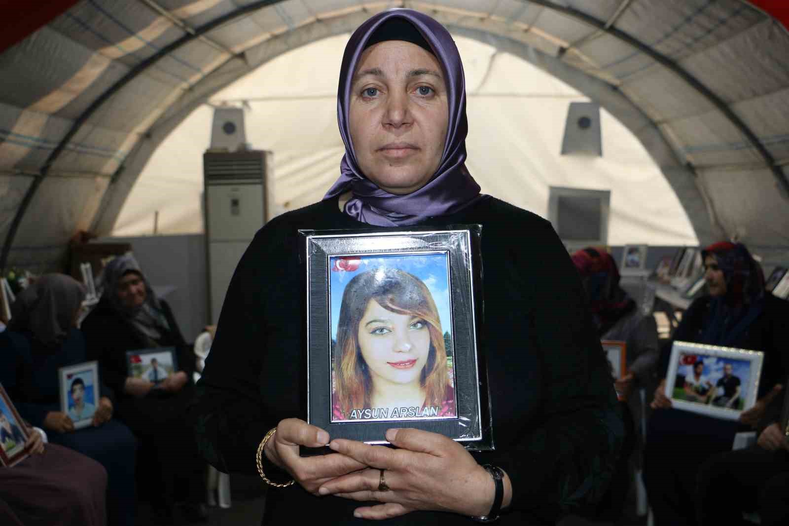 Evladı için 5 yıldır nöbete devam ettiğini belirten Arslan, “5 yıldır burada evlat mücadelemize devam ediyoruz. Kimse bizi görüp duymuyor. Burada sonuna kadar mücadelemize devam edeceğiz. Ne hakları vardı bizim çocuklarımızı götürdüler, buradaki annelerin gözyaşlarını akıttılar. Biz, evlatlarımız HDP ve PKK için büyütmedik. 8 yıldır evladımı benden aldılar. Aysun’umun hasretini 8 yıldır çekiyorum. Kızım, eğer beni görüyorsan dön. Devletimize teslim ol. Oradaki arkadaşlarınla birlikte artık dönün. Size herhangi bir ceza verilmeyecek. Oradakiler sizin gözünüzü korkutuyor. Artık bu hasretimiz bitsin” dedi.