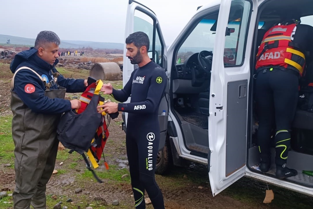 Ekipler, Dicle Nehri’nin de geçtiği bölgede 4 arama kurtarma aracı, 2 zodyak bot ve 2 dron ile arama çalışması yürütüyor.