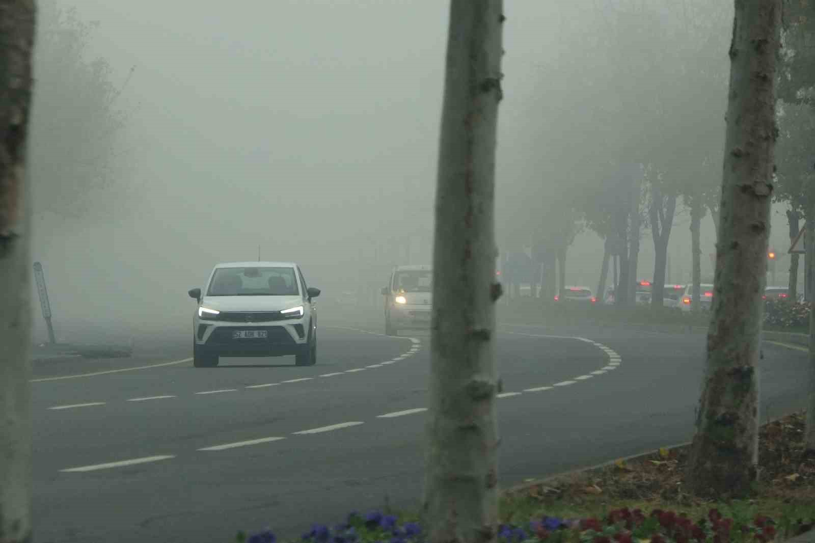 Yoğun sis nedeniyle görüş mesafesinin yer yer 50 metrenin altına düştüğü kentte, sürücüler hızlarını düşürerek ilerledi.