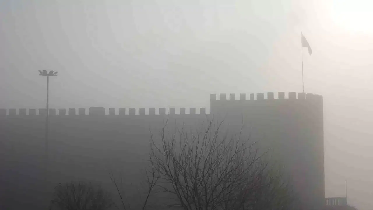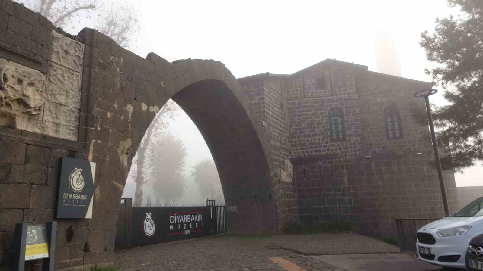 Diyarbakır’da sis altında kalan tarihi yapılar kartpostallık görüntüler oluştururken, uçak seferlerinde ise aksamalar yaşandı.