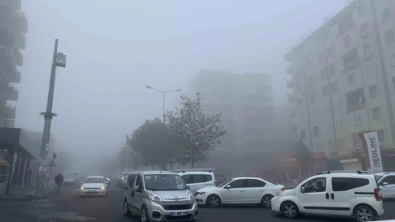 Diyarbakır’da sabah saatlerinde yoğun sis hayatı olumsuz etkilerken uçak seferlerinde aksamalara neden oldu.