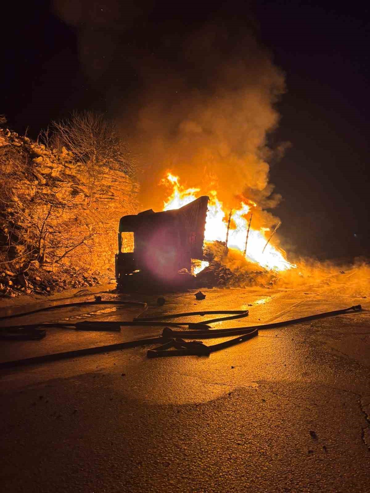 Dokuma Eseri Yüklü Tır Alev Aldı