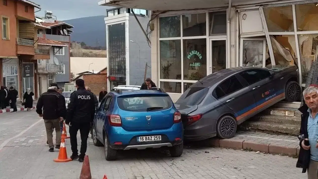 Edinilen bilgilere göre, E.Y. yönetimindeki 16 BAZ 259 plakalı otomobil, ara yoldan ana yola çıktığı sırada sürücünün kontrolünden çıkarak önce H.İ.Z. isimli yayaya, ardından park halindeki iki araca çarptı. Çarpışmanın şiddetiyle park halindeki araçlardan biri, yol kenarındaki bir iş yerinin deposuna girdi. Kaza anı çevredeki bir iş yerinin güvenlik kamerasına saniye saniye yansıdı.