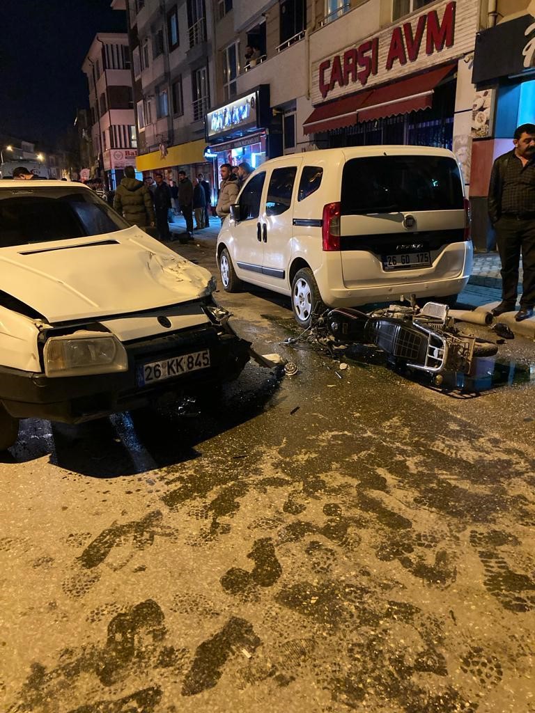 Tepebaşı, Sütlüce Mahallesi ile Eğitimciler Caddesi üzerinden Şamil Sokak istikametine ilerleyen ve Bilgesu Sokağa dönüş yapmak için manevra yapan Ertuğrul Soybelli (41) idaresindeki 26 KK 845 plakalı araca, Eğitimciler Caddesi üzerinden çevre yolu istikametinde ilerleyen Yiğit Kuş idaresindeki 26 GG 751 plakalı motosiklet çarptı. Çarpışma sonucu meydana gelen trafik kazasında motosiklet sürücüsü Yiğit Kuş ve yolcu Arda Aydın (17) yaralandı. İhbar üzerine olay yerine gelen 112 Acil Servis ekipleri Kuş ve Aydın’ı hastaneye kaldırırken, yaralıların hayati tehlikelerinin olduğu tespit edildi. Polis kazayla ilgili inceleme başlattı. Kaza anı ise olay yerini gören güvenlik kamerasına anbean yansıdı.