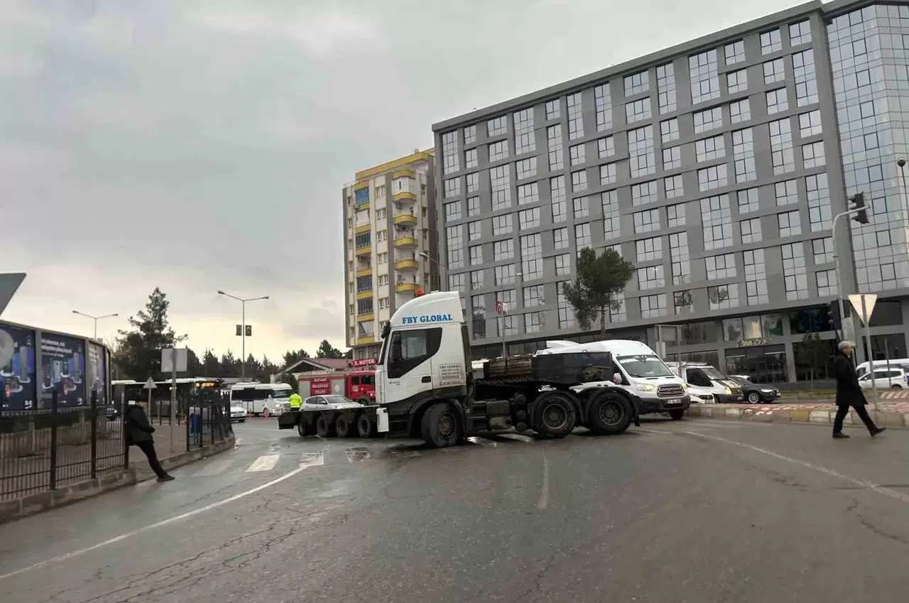 Batman’da kavşağı dönemeyen tırın kopan dorsesi yolu trafiğe kapattı.