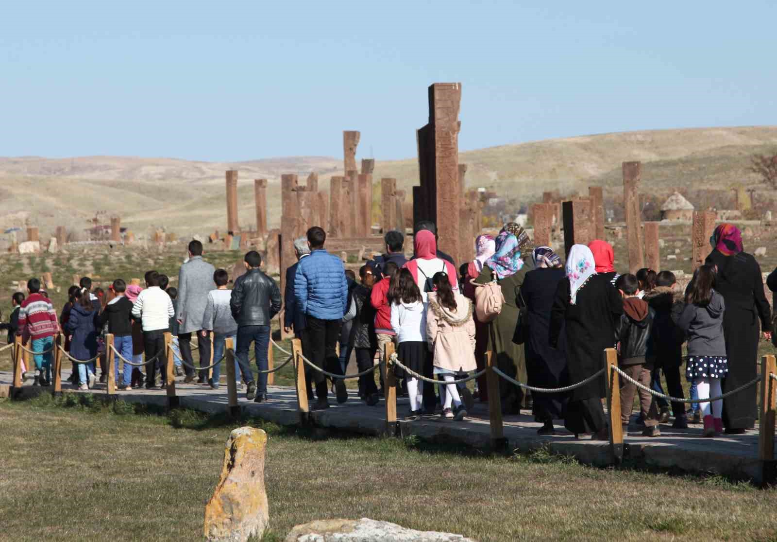 Anadolu’nun Orhun Abideleri olarak da bilinen UNESCO Dünya Kültür Mirası Geçici Listesi’nde bulunan ve dünyanın en büyük Türk-İslam Mezarlığı olan Ahlat Selçuklu Meydan Mezarlığı başta olmak üzere Ahlat’taki kümbetler, kaleler ve diğer tarihi mekanlar son yıllarda yoğun ziyaretçi akınına uğruyor. Ahlat Müze Müdürü Mikail Ercek, Selçuklu Meydan Mezarlığı başta olmak üzere Ahlat’taki tarihi mekanlardaki ziyaretçi yoğunluğunun her yıl katlanarak arttığını söyledi. Resmi rakamlara göre 2023 yılında Ahlat Müzesini 20 bin, Ahlat Selçuklu Meydan Mezarlığını ise 170 bin kişinin ziyaret ettiğini belirten Ahlat Müze Müdürü Mikail Ercek, ziyaretçi sayısında bir önceki yıla oranla yüzde 50’den fazla bir artış söz konusu olduğunu söyledi. Ercek, “Gerek müzemizin ve gerekse Selçuklu Meydan Mezarlığının ziyaretçi sayısı her geçen gün artarak devam ediyor. Her sene bir önceki seneye göre artıyor. Tabi devletimizin buraya olan ilgisi ve Cumhurbaşkanımızın burayı ziyaretleri, Kültür ve Turizm Bakanlığının buradaki çalışmaları, yaptığı çevre düzenlemeleri ziyaretçi sayısındaki artışa büyük etken oluyor. 2022 yılında 90 bin ziyaretçiyi ağırlamışken 2023 yılında 170 bin ziyaretçi ağırladık. Tabi ki bu büyük bir rakam, yaklaşık yüzde 50’nin üzerinde bir rakama denk geliyor. Ziyaretçi sayısındaki artış sevindirici bir olay. İnşallah bundan sonraki senelerde de artarak devam edecektir” dedi.