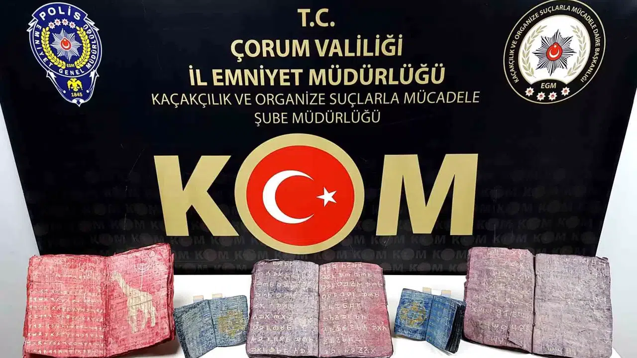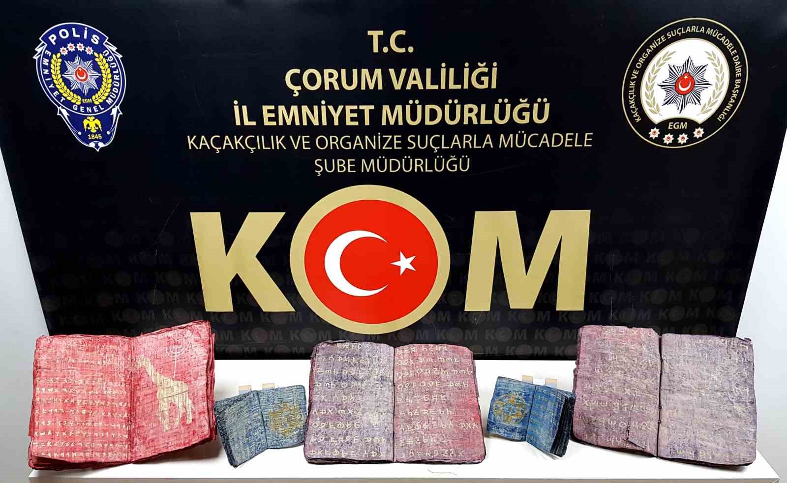 Çorum polisi tarafından düzenlenen operasyonda çeşitli dönemlere ait 5 adet el yazması eser ele geçirildi.