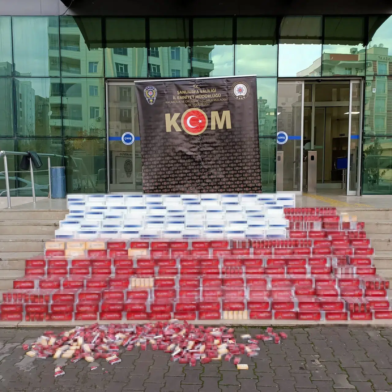 Şanlıurfa’da durdurulan araçta yapılan aramada 10 bin 500 paket gümrük kaçağı sigara ele geçirildi.