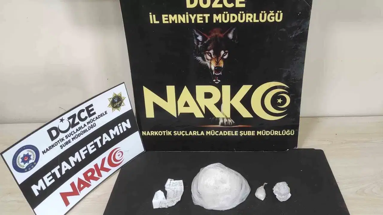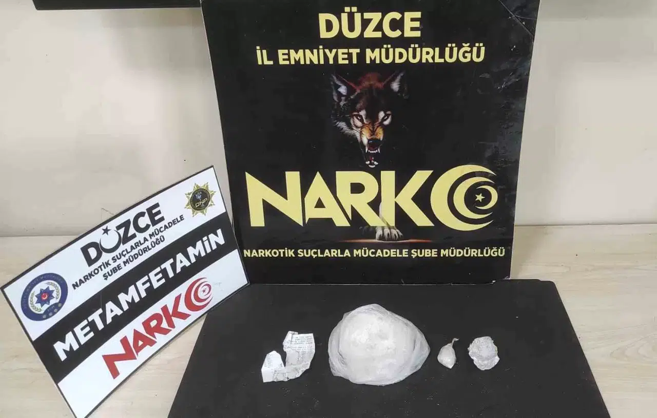 Düzce Cumhuriyet Başsavcılığı koordinesinde uyuşturucu tacirlerine yönelik çalışmalar yapan Narkotik Suçlarla Mücadele Şube Müdürlüğü ekipleri, N.K., U.Ö. ve E.Ö. isimli şüphelileri gözaltına aldı. Şüphelilerin üzerlerinde ve araçlarında yapılan aramada 4 parça halinde 206 gram metamfetamin ele geçirildi. 3 şüpheli, "uyuşturucu madde ticareti" suçundan çıkartıldıkları sulh ceza mahkemesince tutuklandı.