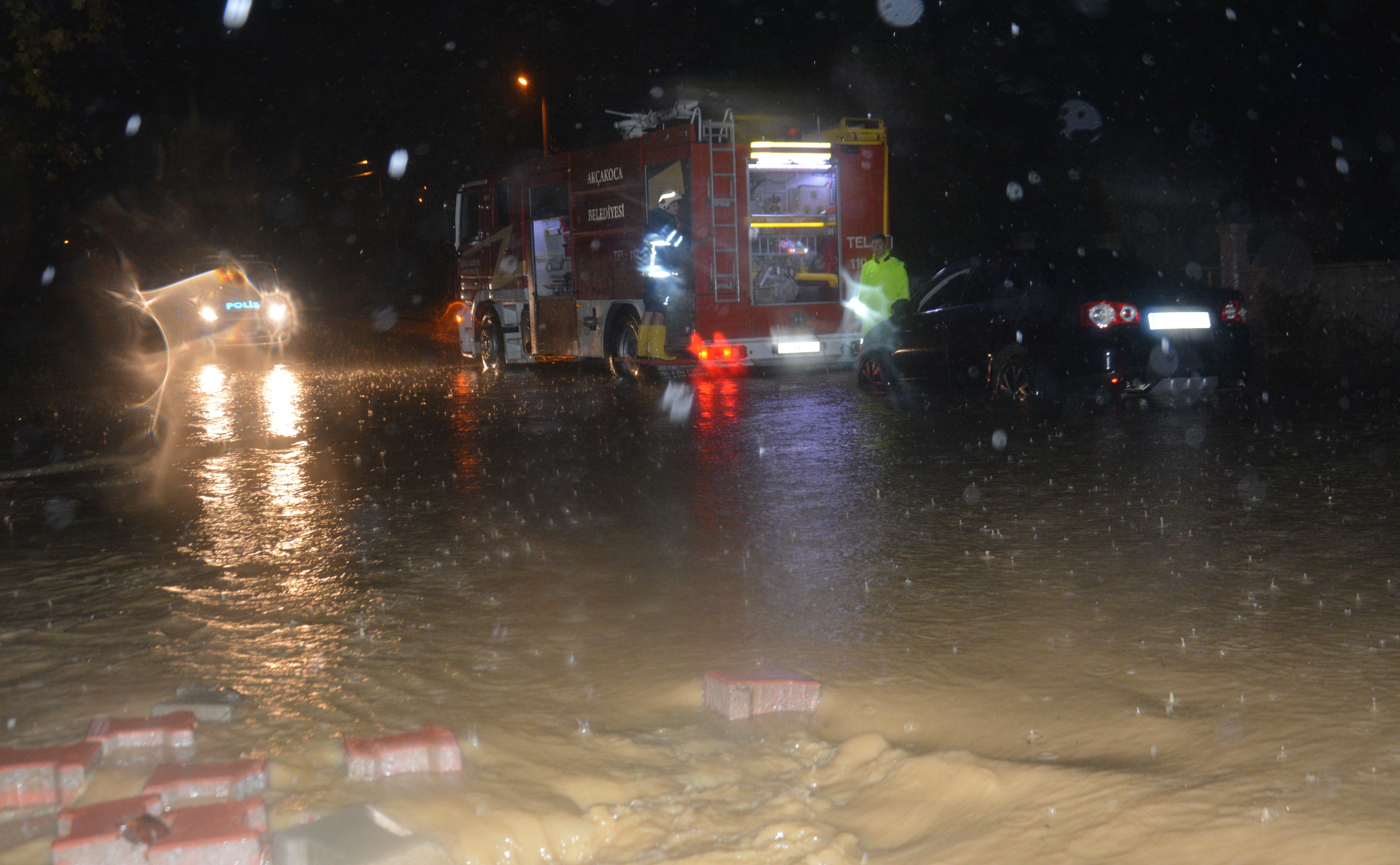 İl genelinde akşam saatlerinde etkili olmaya başlayan kuvvetli yağış, Akçakoca ilçesinde taşkınlara yol açtı.