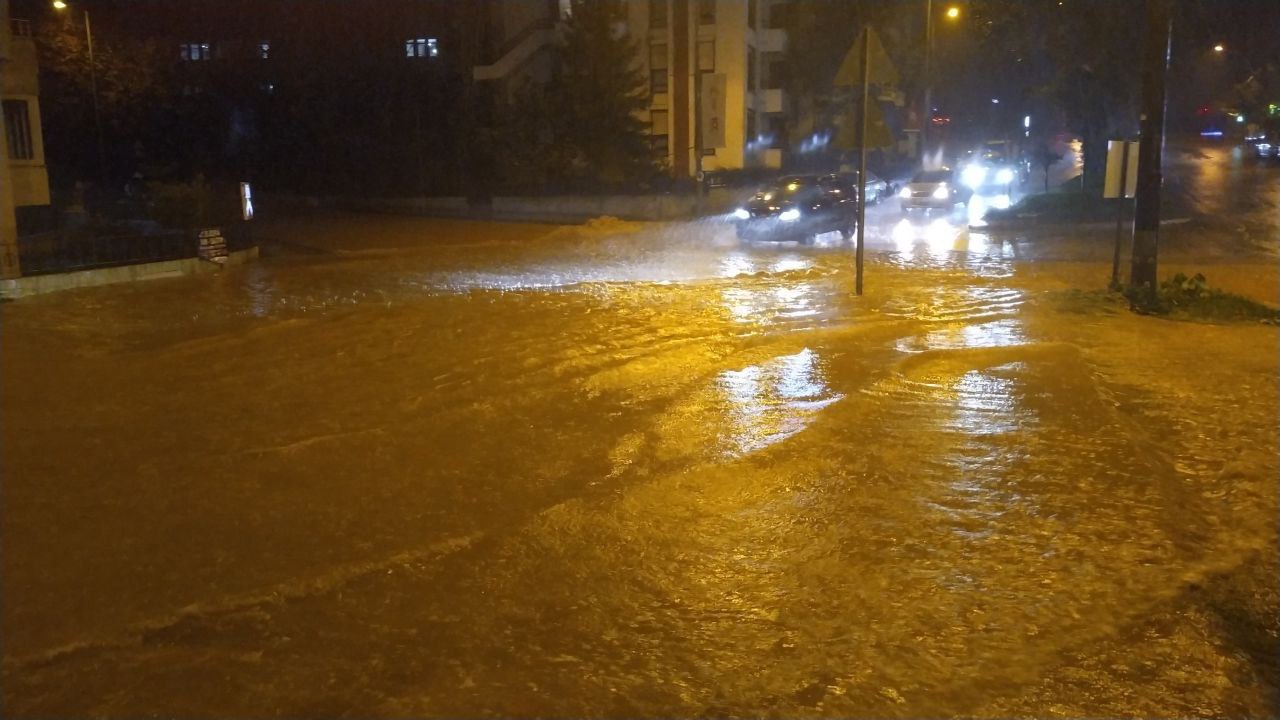 Sağanağın devam ettiği ilçede sürücülerin ilerlemekte zorlandığı görüldü.