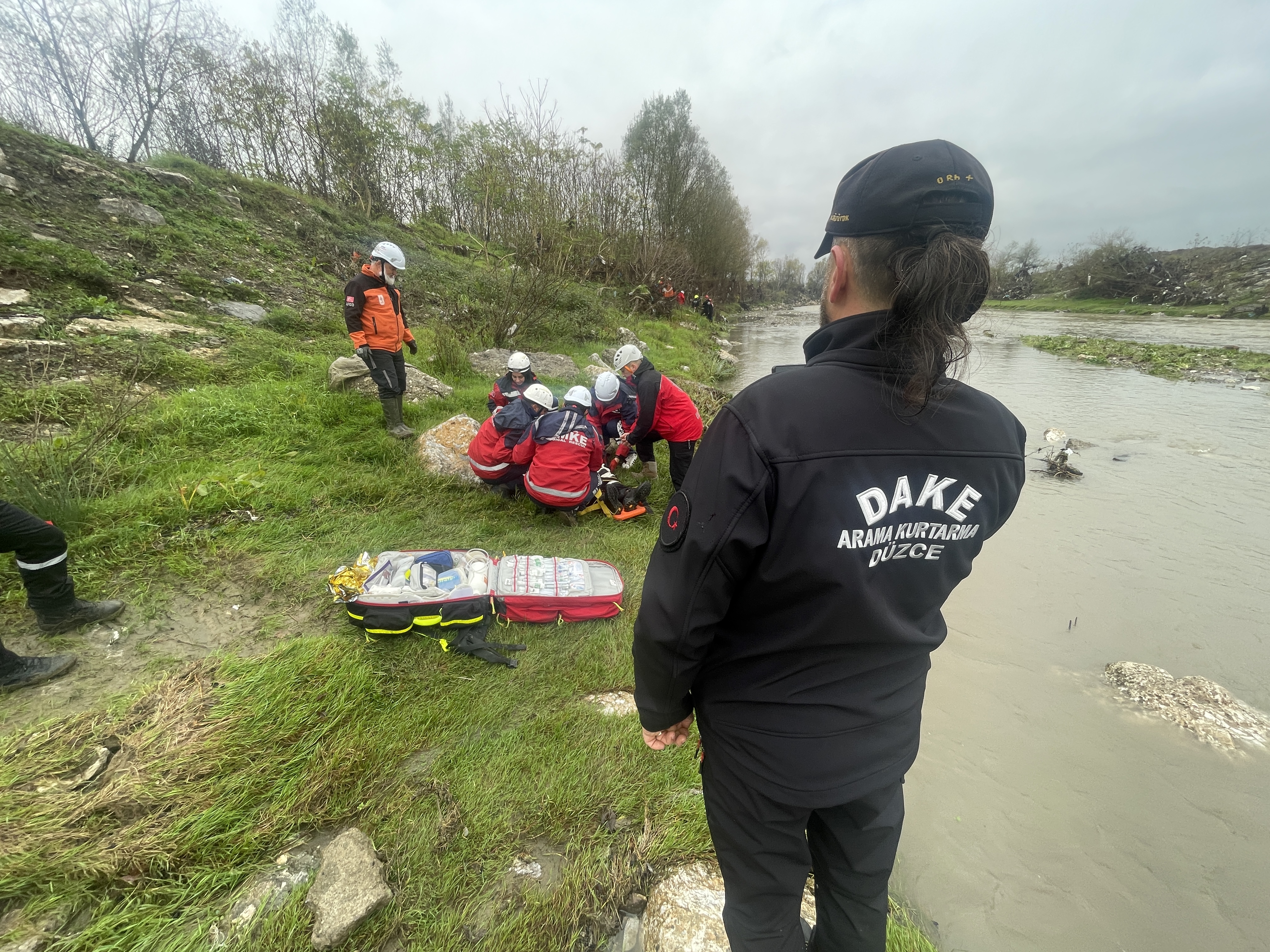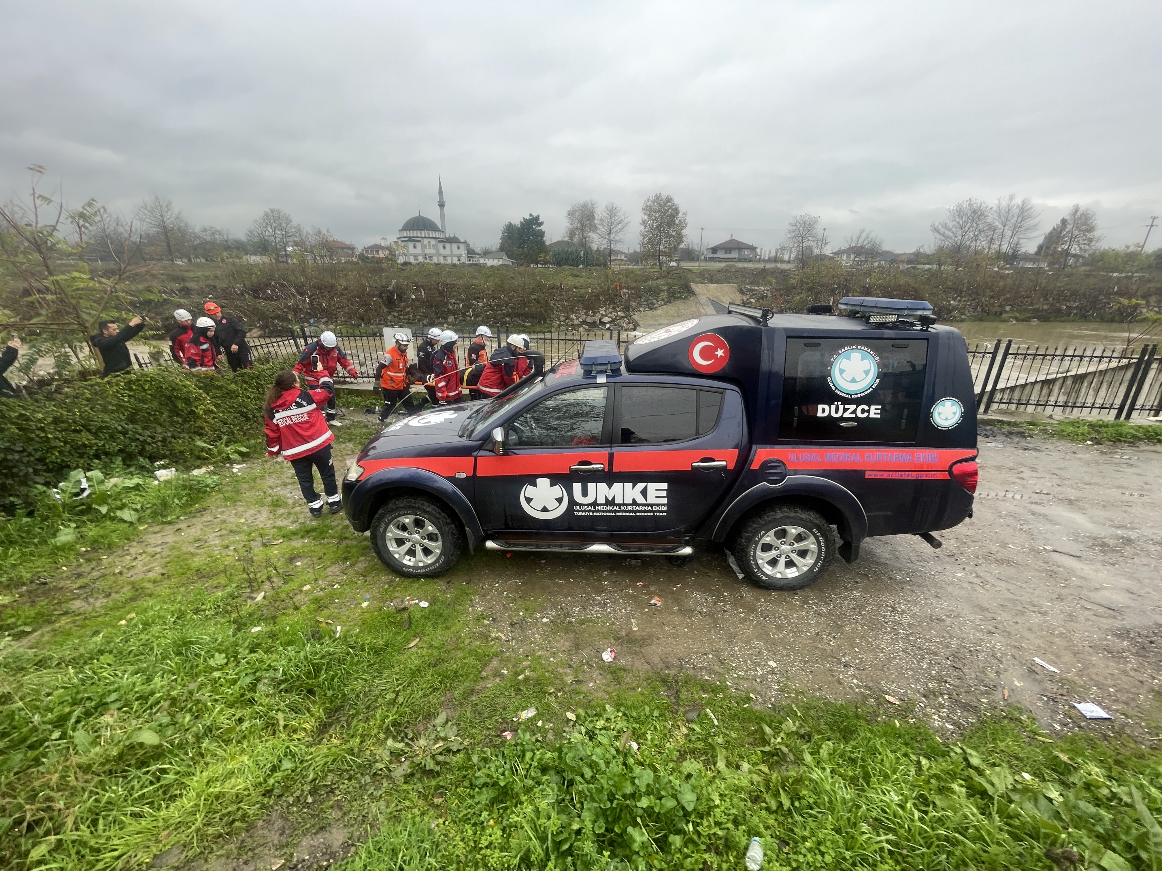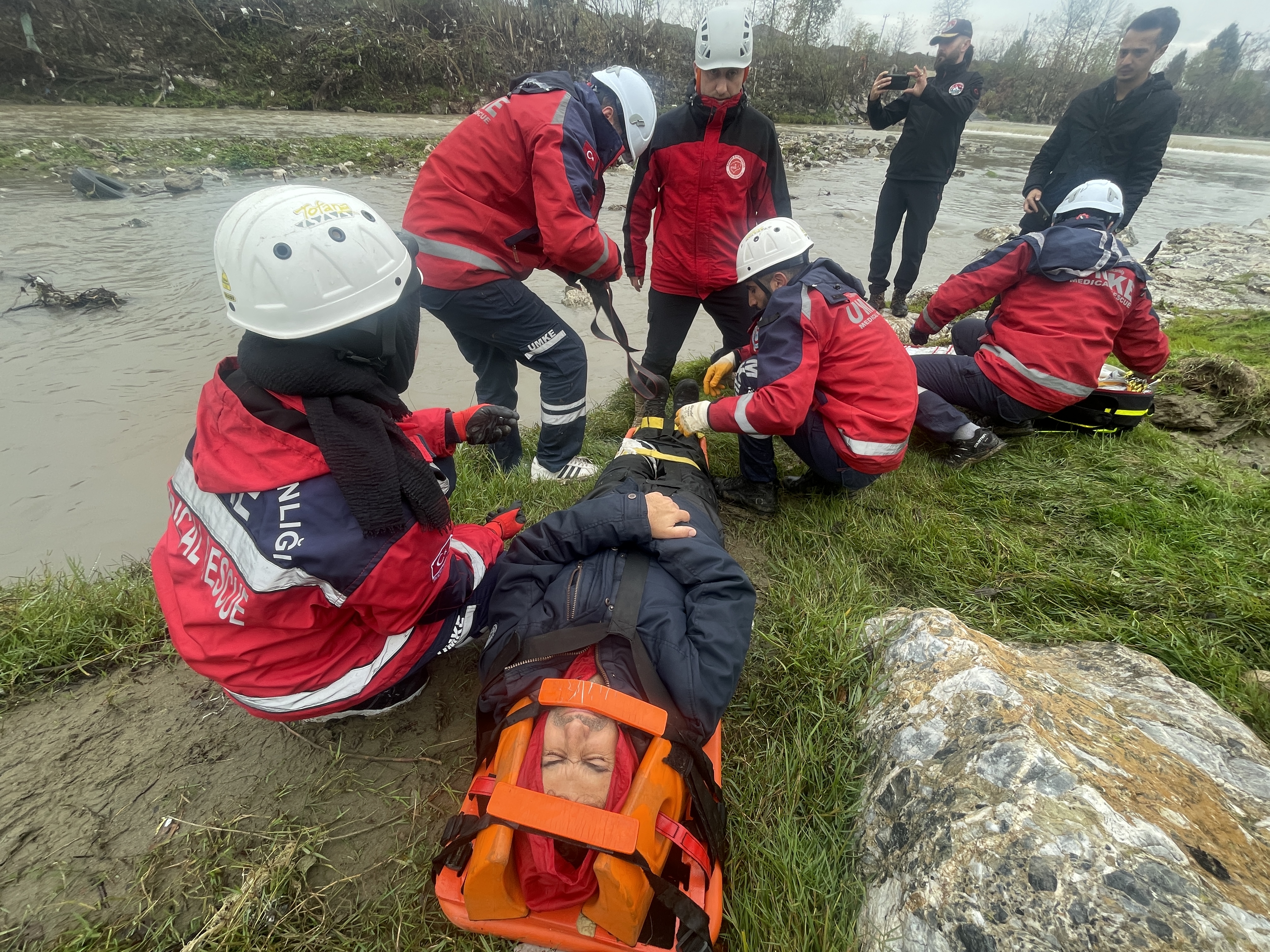 UMKE ve AFAD koordinesinde yapılan tatbikatta, senaryo gereği kentte meydana gelen selde Melen Çayı'na düşen 3 kişinin kurtarılması için kırmızı alarm verildi.