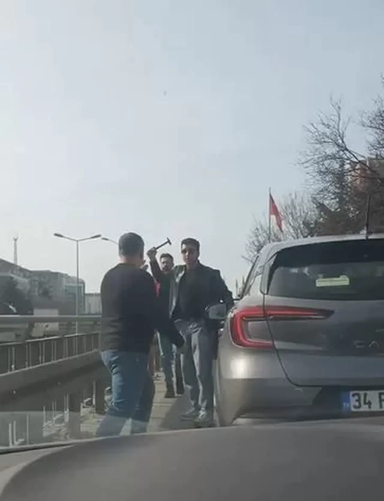 Beylikdüzü E-5 Karayolu’nda iftar saatinde trafikte kalan sürücüler arasında bıçaklı çekiçli kavga çıktı. Kavga anı cep telefonu kamerasına yansıdı.