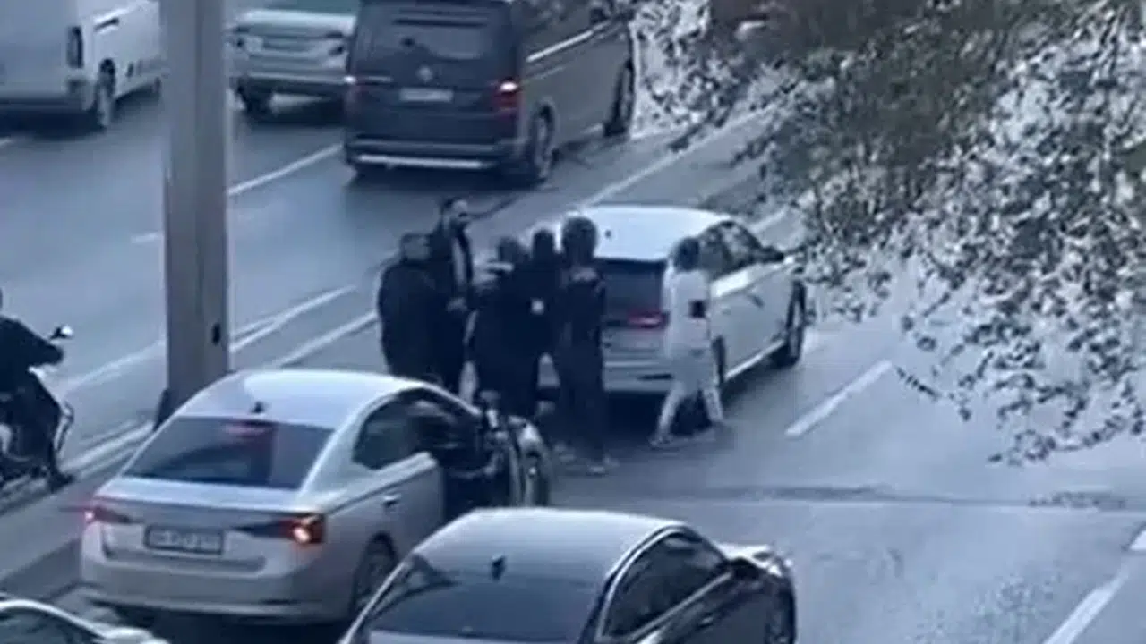 Olay, geçtiğimiz Cuma günü E-5 Karayolu Beylikdüzü mevkinde yaşandı. İddiaya göre trafikte tartışan sürücüler akan trafiğe aldırmadan araçlarından inerek tartışmaya başladı. Kısa sürede büyüyen tartışma kavgaya dönerken, taraflar yumruk yumruğa birbirine saldırdı. Kavga eden sürücüleri ayırmak isteyen hamile bir kadın ise kavganın ortasında kalarak fenalaştı. Yaşanan o anlar ise vatandaşın cep telefonu kamerasına yansıdı.