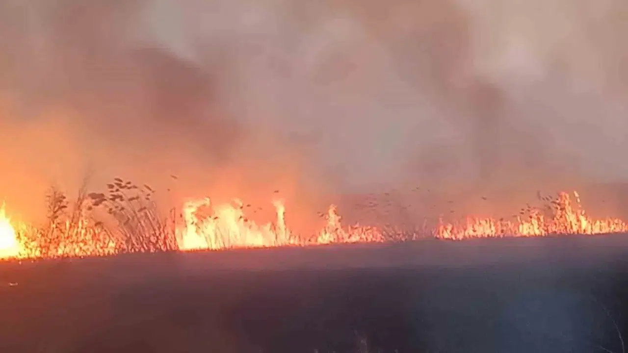 Türkiye’nin en büyük göllerinden biri olan Eber Gölü’nün Afyonkarahisar sınırları içerisinde kalan kısmındaki sazlık alanda yangın çıktı. Rüzgarın etkisiyle geniş bir alana yayılan yangına müdahale sürüyor.