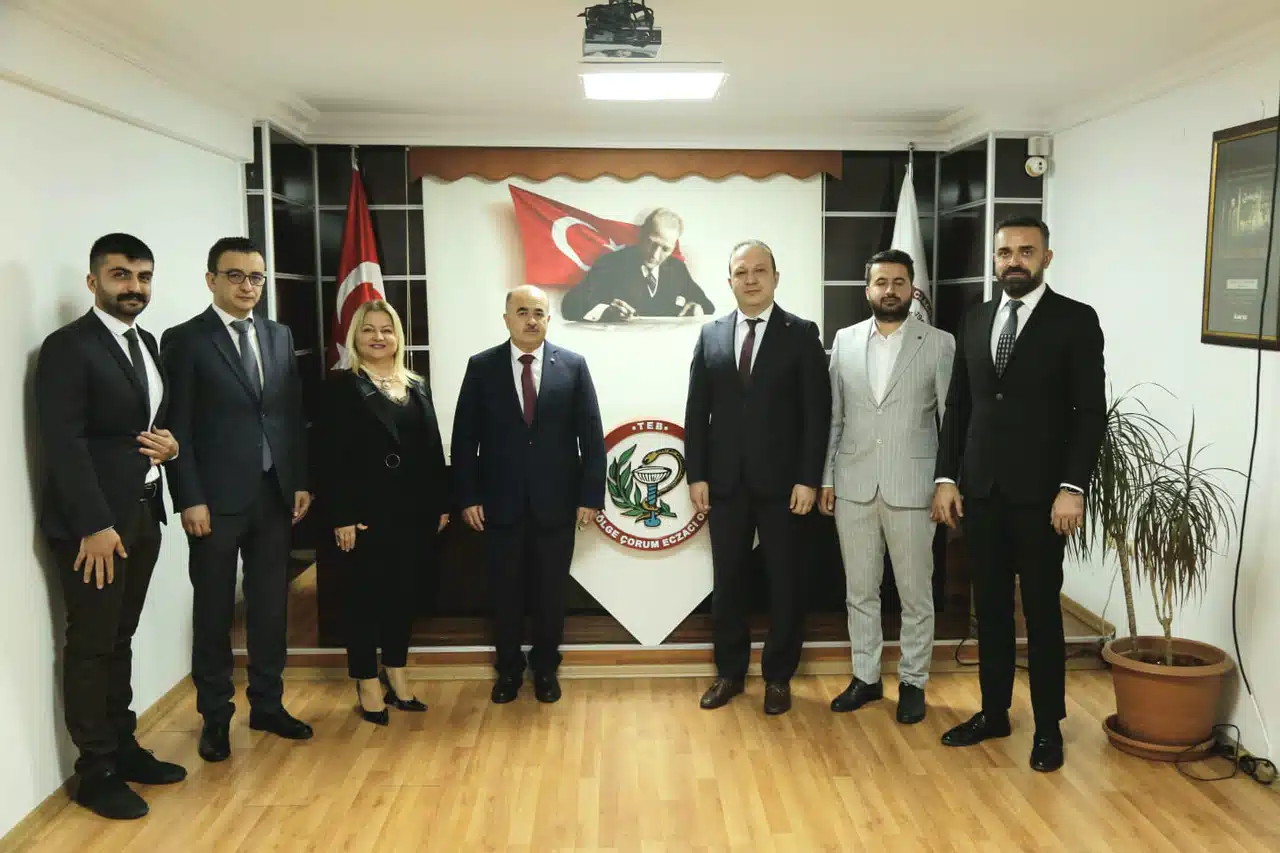 Ziyarette Çorum Eczacı Odası Yönetim Kurulu Başkanı Erol Afacan, Genel Sekreter Çelebi Ayvaz, Sayman Özden Sak, Yönetim Kurulu Üyeleri Sertan Saygı Çalışkan ve Hamdi Kartal hazır bulundu.