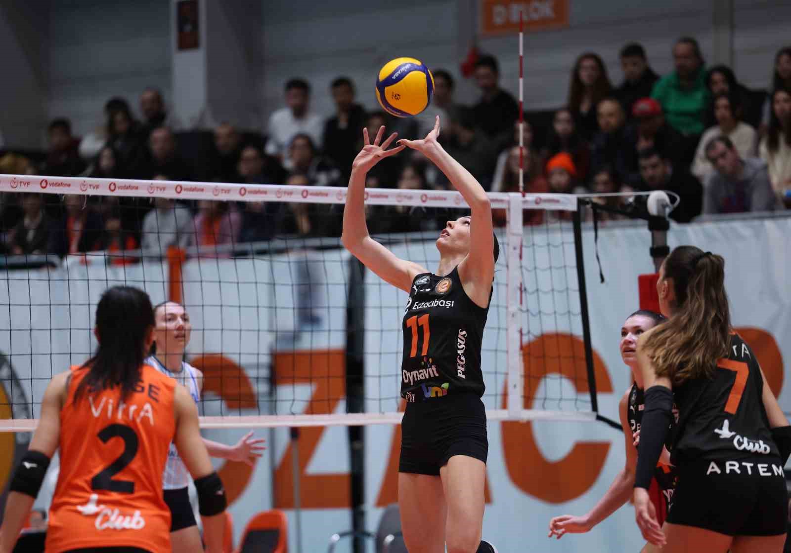 Vodafone Sultanlar Ligi 16. haftasında evinde Aydın Büyükşehir Belediyespor’u konuk eden Eczacıbaşı Dynavit, 28-26, 25-23, 25-22 ve 26-24’lük set skorlarıyla sahadan 3-1 galip ayrılarak galibiyet serisini 14 maça çıkardı.
