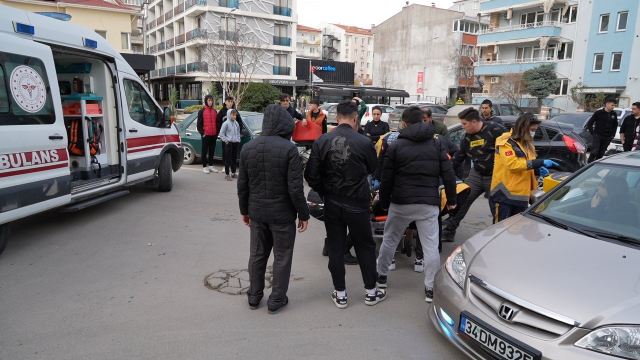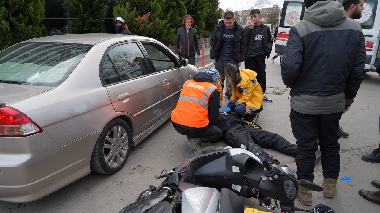 Çarpışmasının etkisiyle motosiklet sürücüsü A.T. yere düşerek yaralandı. Çevrede bulunan vatandaşlar da yaralının başında durarak, sağlık ekiplerinin gelmesini bekledi.