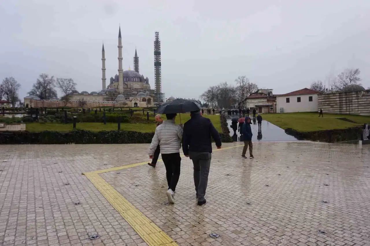 Tekirdağ’dan Edirne’ye gezmeye gelen Yaşar Önder, yağmur ve soğuk havaya rağmen Selimiye Camii ve diğer tarihi noktaları gezeceklerini söyledi.