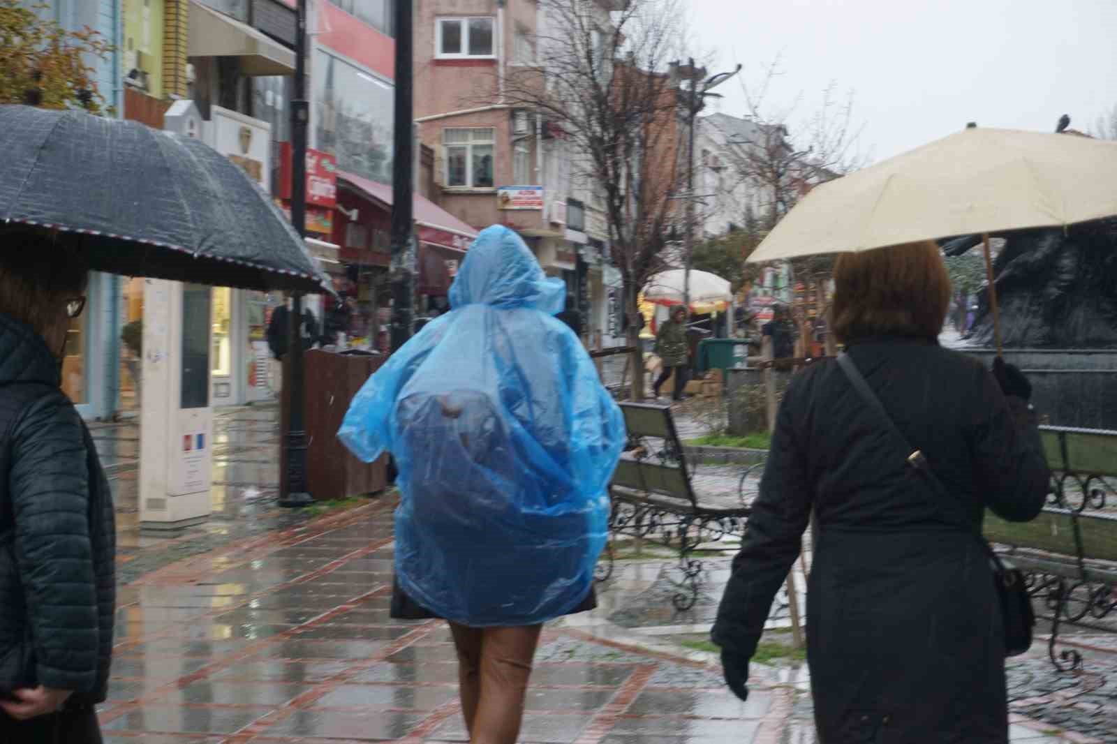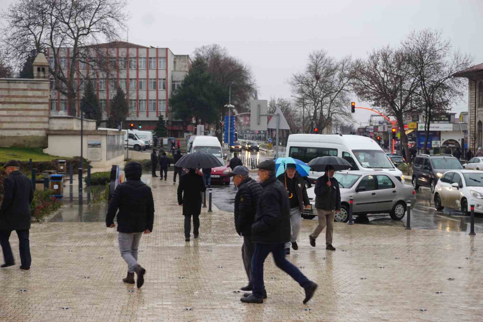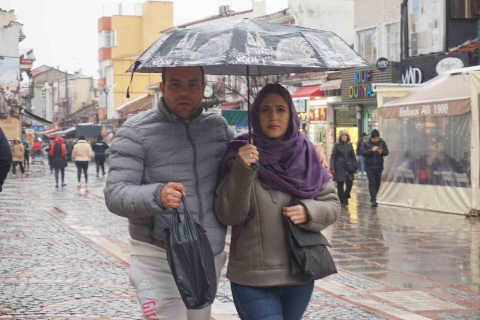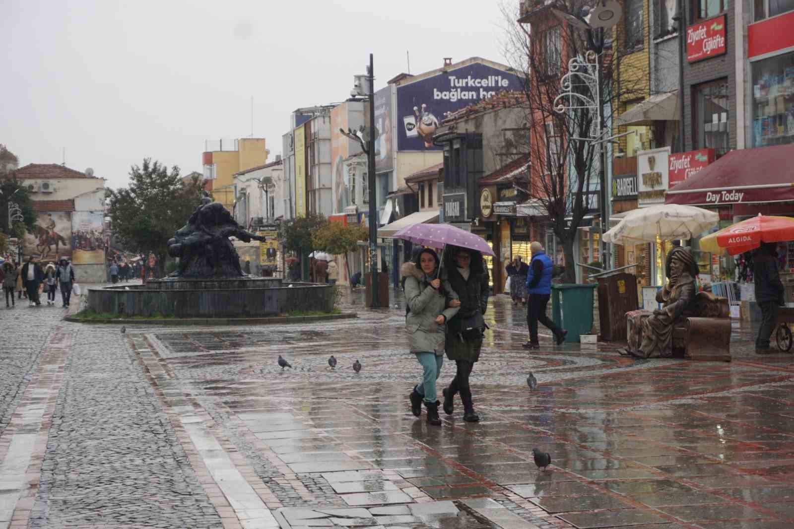 Edirne’de öğle saatlerinde başlayan sağanak hayatı olumsuz etkiledi.