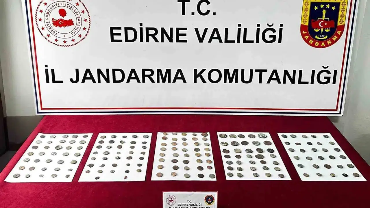 Edirne İl Jandarma Komutanlığı Kaçakçılık ve Organize Suçlarla Mücadele ve İstihbarat Şube Müdürlüğü ekipleri, teknik takip sonrası bir yolcu otobüsünü durdurdu. Şüpheli yolcu belirlenip, üst araması yapıldı. Aramada, tarihi eser olduğu değerlendirilen gümüş, bronz ve bakır 177 adet sikke ele geçirildi. Gözaltına alınan şüpheli hakkında adli tahkikat başlatıldı.