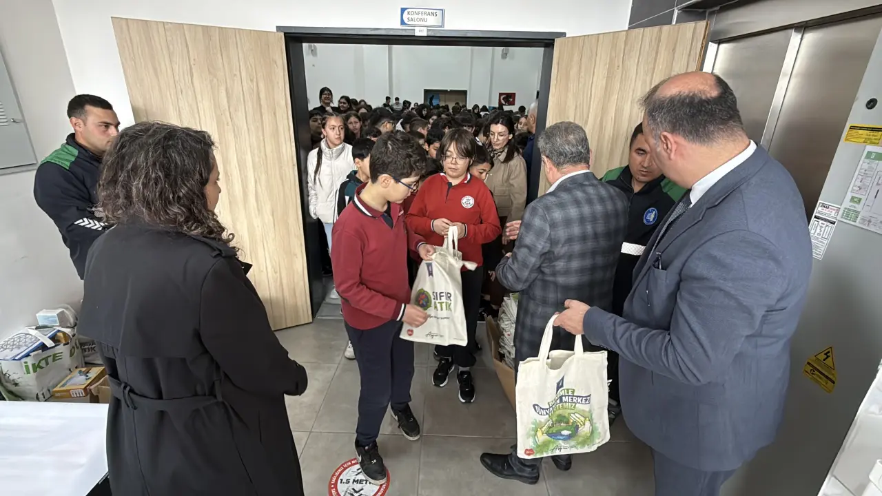 30 Mart Uluslararası Sıfır Atık Günü etkinlik programı kapsamında Hacı Bektaş Veli Ortaokulu konferans salonunda gerçekleştirilen etkinliğe Belediye Başkan Yardımcısı Turhan Candan, Okul Müdürü Muharrem Olukçu, İklim Değişikliği ve Sıfır Atık Müdürü Furkan Acar, öğretmenler ve öğrenciler katıldı.