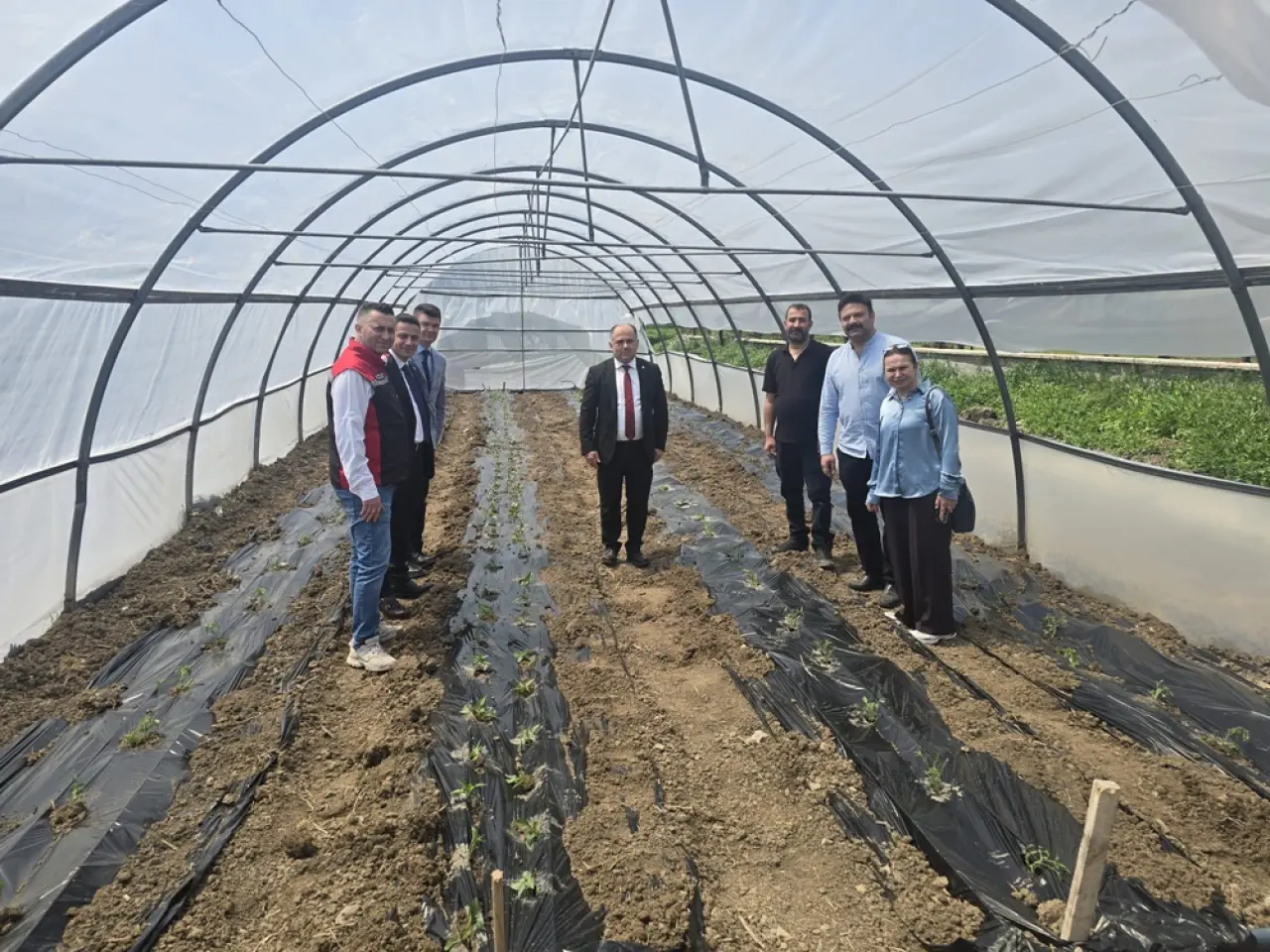 İl Tarım ve Orman Müdürü Hasan Taş'ın da katılım sağladığı sera uygulamalarında aşılı salatalık ile çeri ve sırık domatesin yanı sıra biber başta olmak üzere farklı türlerden sebzeler toprakla buluşturuldu.