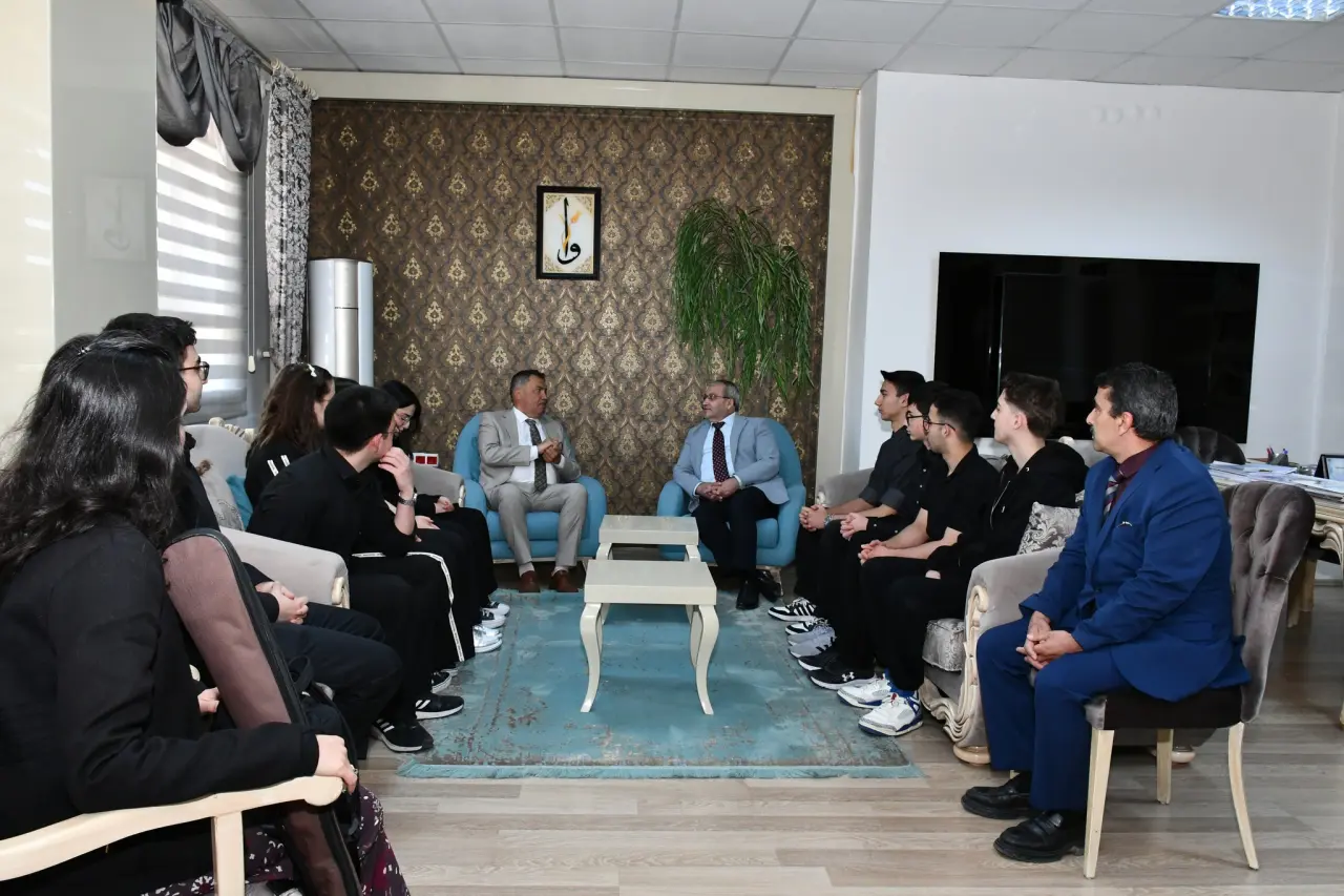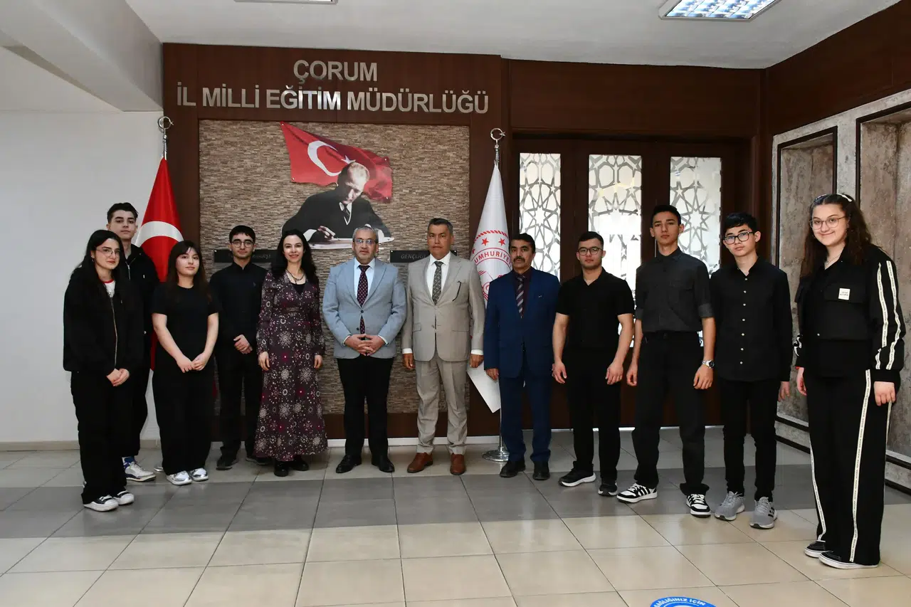 Çorum Şehit Abdullah Tayyip Olçok Anadolu Lisesi öğrencileri tarafından hazırlanan Doğu Türkistan konulu panelin Amasya'da sahnelenmesi öncesinde İl Milli Eğitim Müdürü Cemil Çağlar öğrenci ile öğretmenleri makamında ağırlayarak başarı dileklerini iletti.