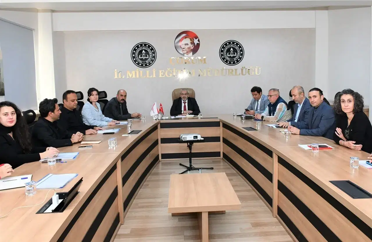 Çorum İl Milli Eğitim Müdürlüğü'nde, İl Müdürü Cemil Çağlar başkanlığında düzenlenen haftalık değerlendirme toplantısında, bu hafta yapılacak olan 1. dönem 1. ortak yazılı sınavların planlaması ve Türkiye Yüzyılı Maarif Modeli kapsamında yürütülen projeler masaya yatırıldı.