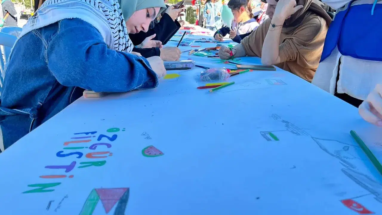 Program, yapılan dualar ve dayanışma mesajlarıyla sona ererken, çocukların çizimlerinin tüm insanlığa bir umut mesajı olduğu belirtildi.