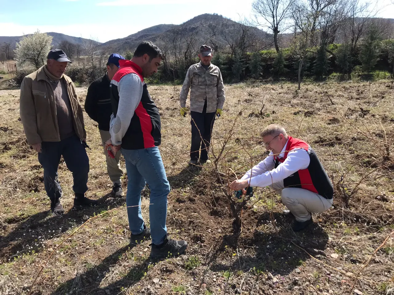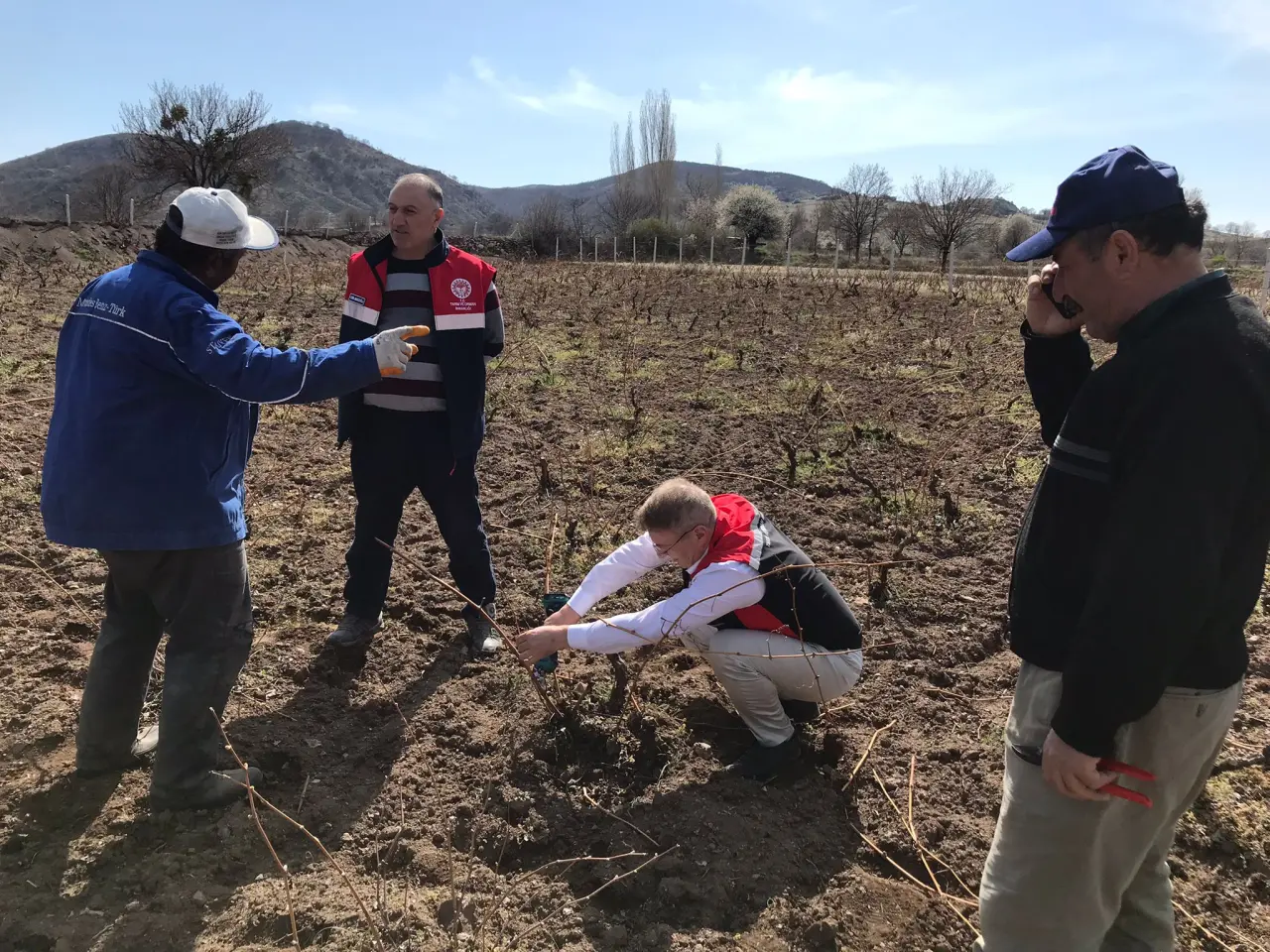 Sahada birebir gösterilerek gerçekleştirilen etkinlikte bağlarda doğru budama teknikleri ve bitki sağlığının korunması gibi kritik konular ele alındı.
