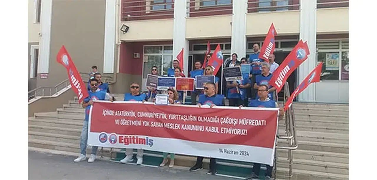 Çorum’da ve tüm Türkiye’de sendika binalarımıza, "Çağ dışı müfredatı tanımıyoruz, eğitimde tarikat ve cemaatlere geçit vermeyeceğiz, Öğretmenlik meslek kanununuza boyun eğmeyeceğiz, Cumhuriyet dersi vermeye devam edeceğiz” pankartını astık.